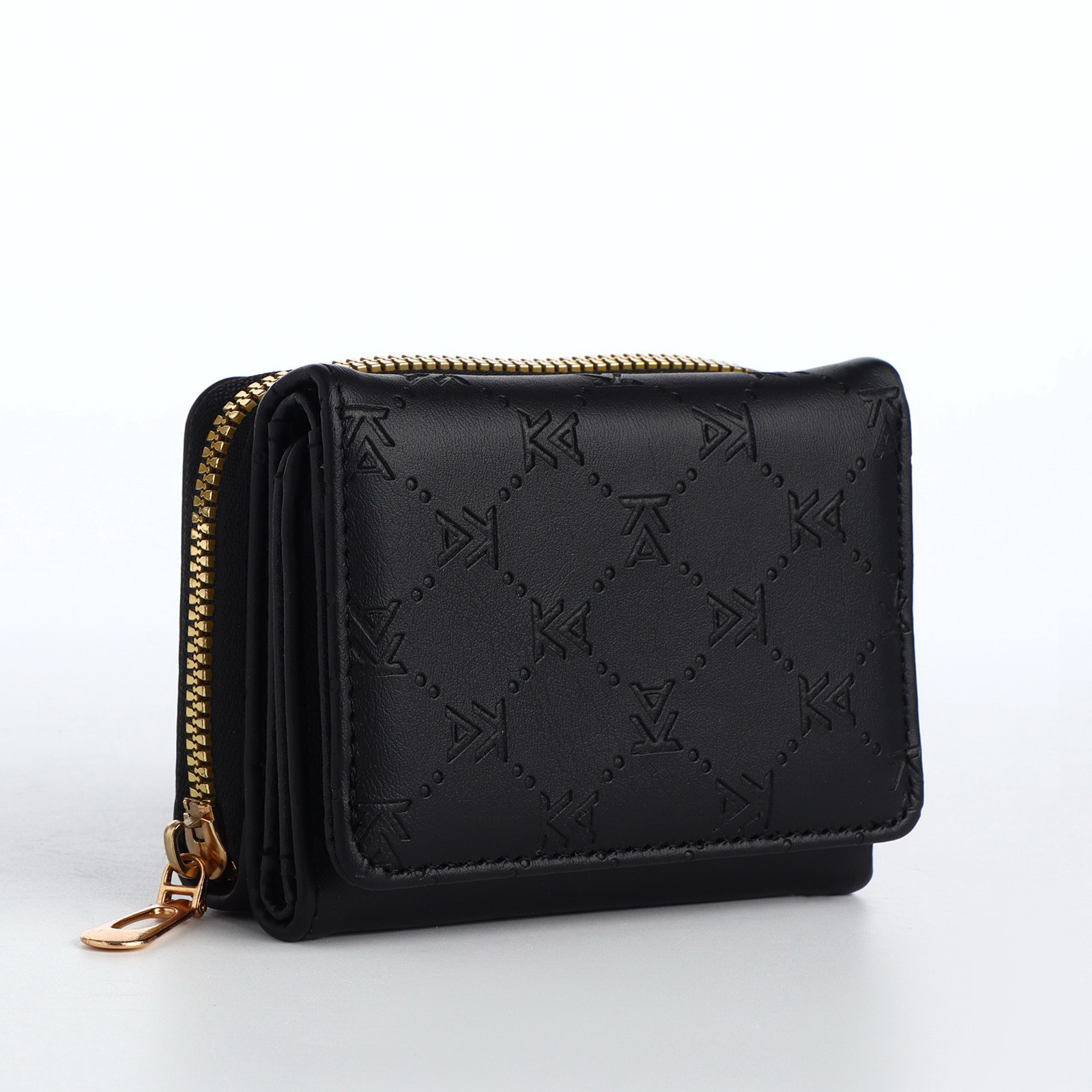 Кошелёк женский на кнопке 11x4x8 см, тиснением, чёрный, 4x11x8 см., Китай