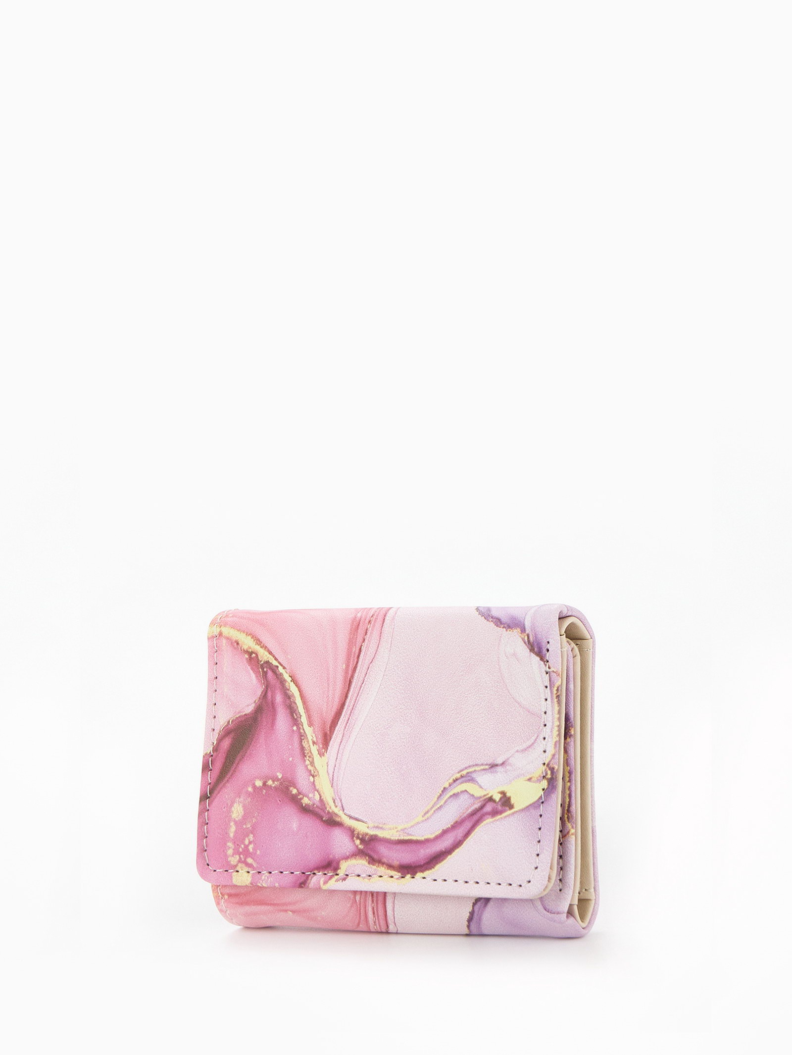 Кошелёк женский на кнопке, 10x1.5x8 см, с принтом, розовый, 1.5x10x8 см., Китай