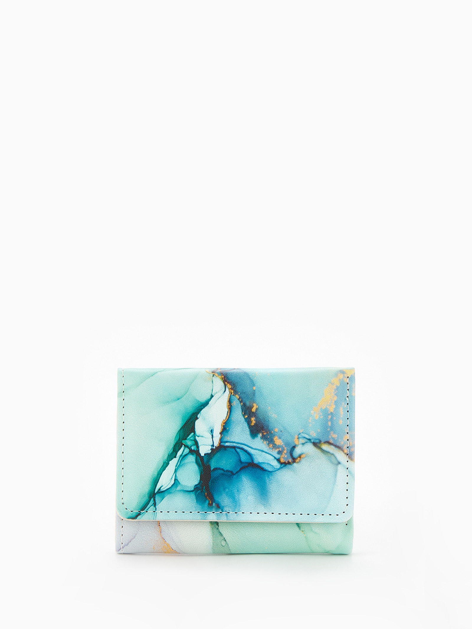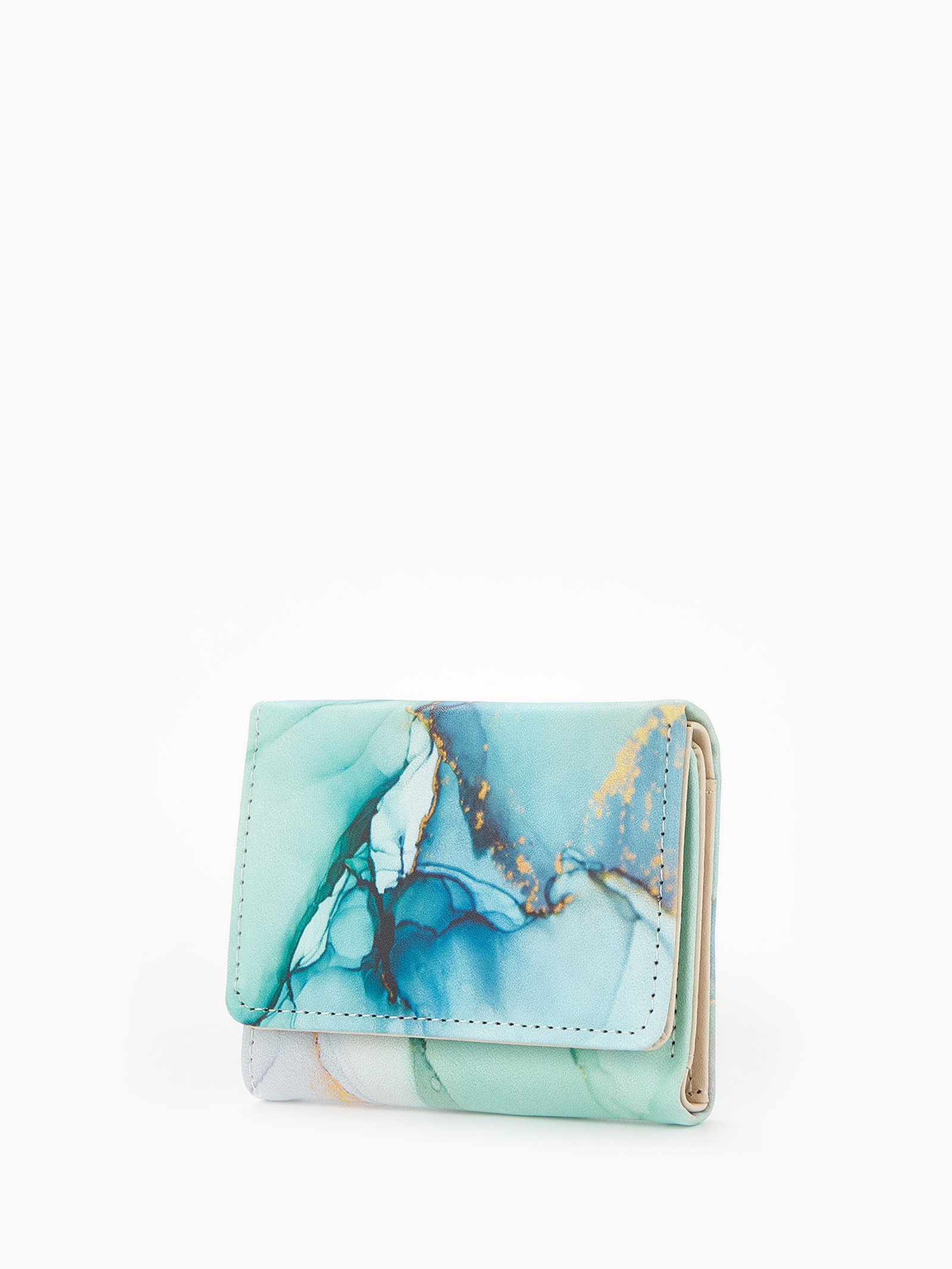 Кошелёк женский на кнопке, 10x1.5x8 см, с принтом, зелёный/бирюзовый, 1.5x10x8 см., Китай