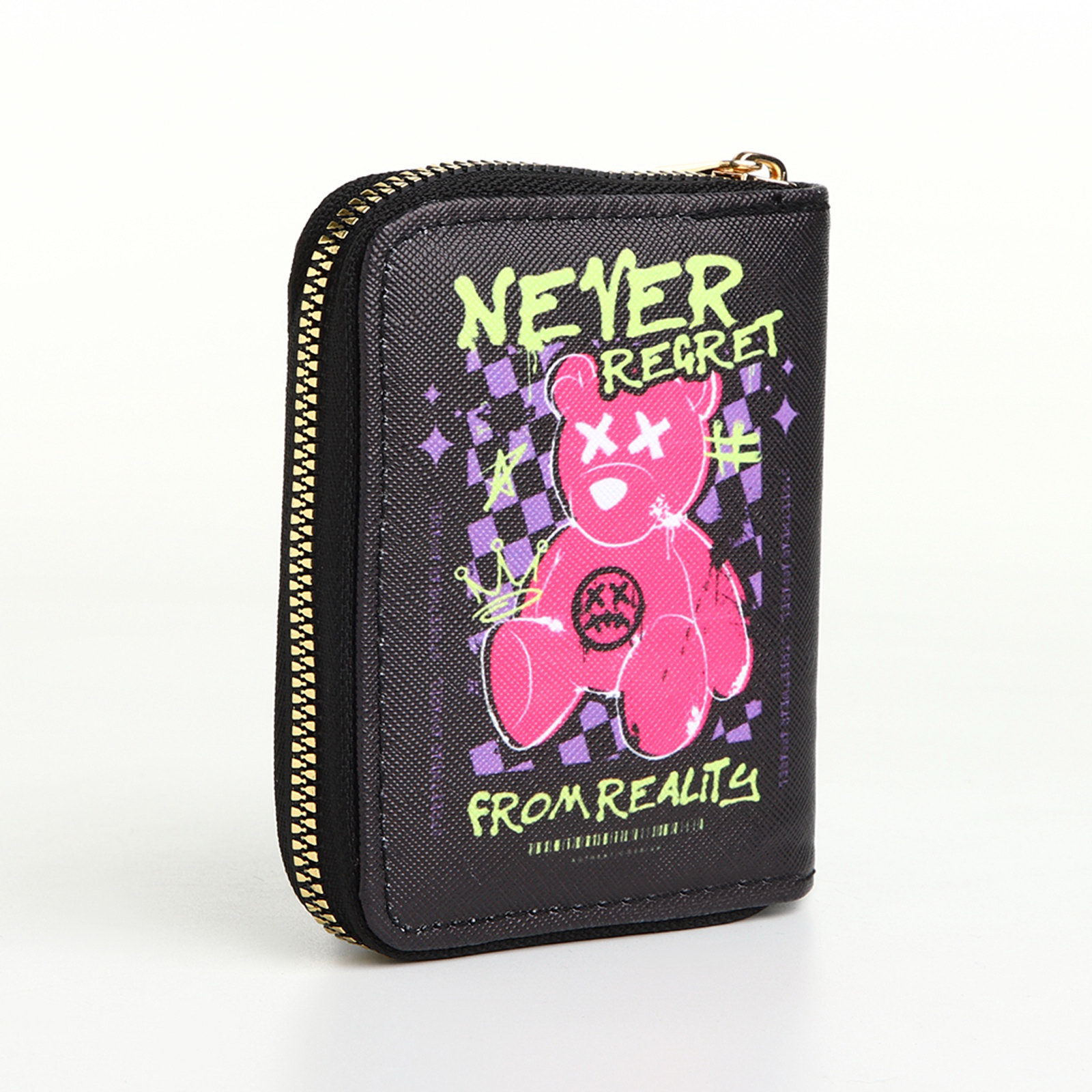 Кошелёк на молнии Never regret, чёрный, 2x8.5x11 см., Китай