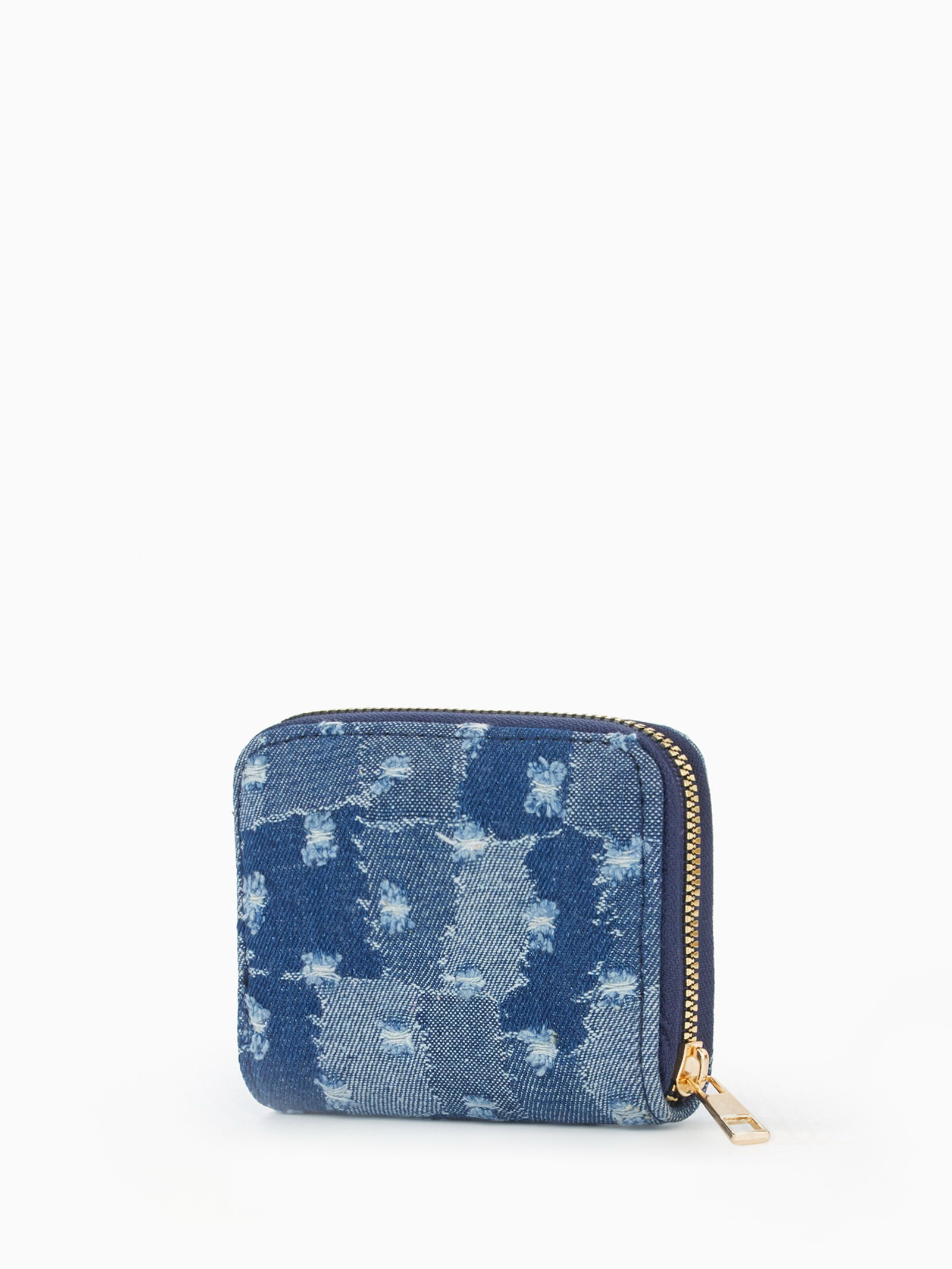 Кошелёк женский на молнии 8.5x2x11 см, джинсовый, синий, 2x8.5x11 см., Китай