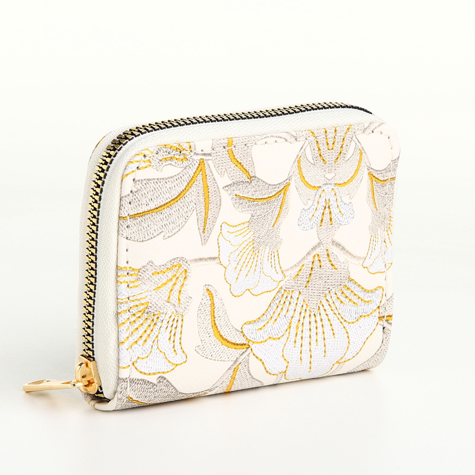 Кошелёк на молнии, три отделения, маленький, с вышивкой, белый, 2x8.5x11 см., Китай