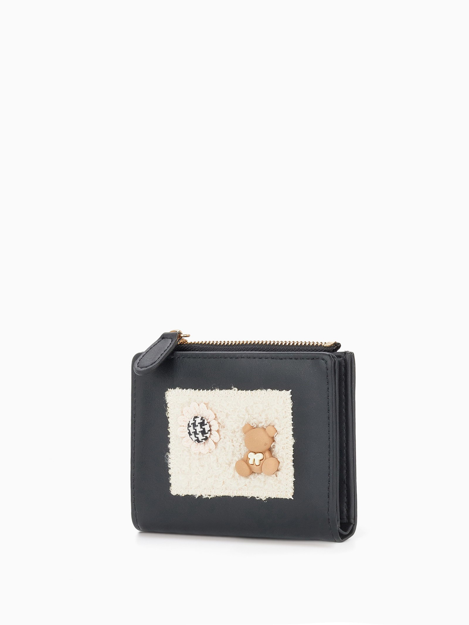Кошелёк женский на кнопке, 11.5x2x9 см, с объёмной нашивкой, чёрный, 2x11.5x9 см., Китай
