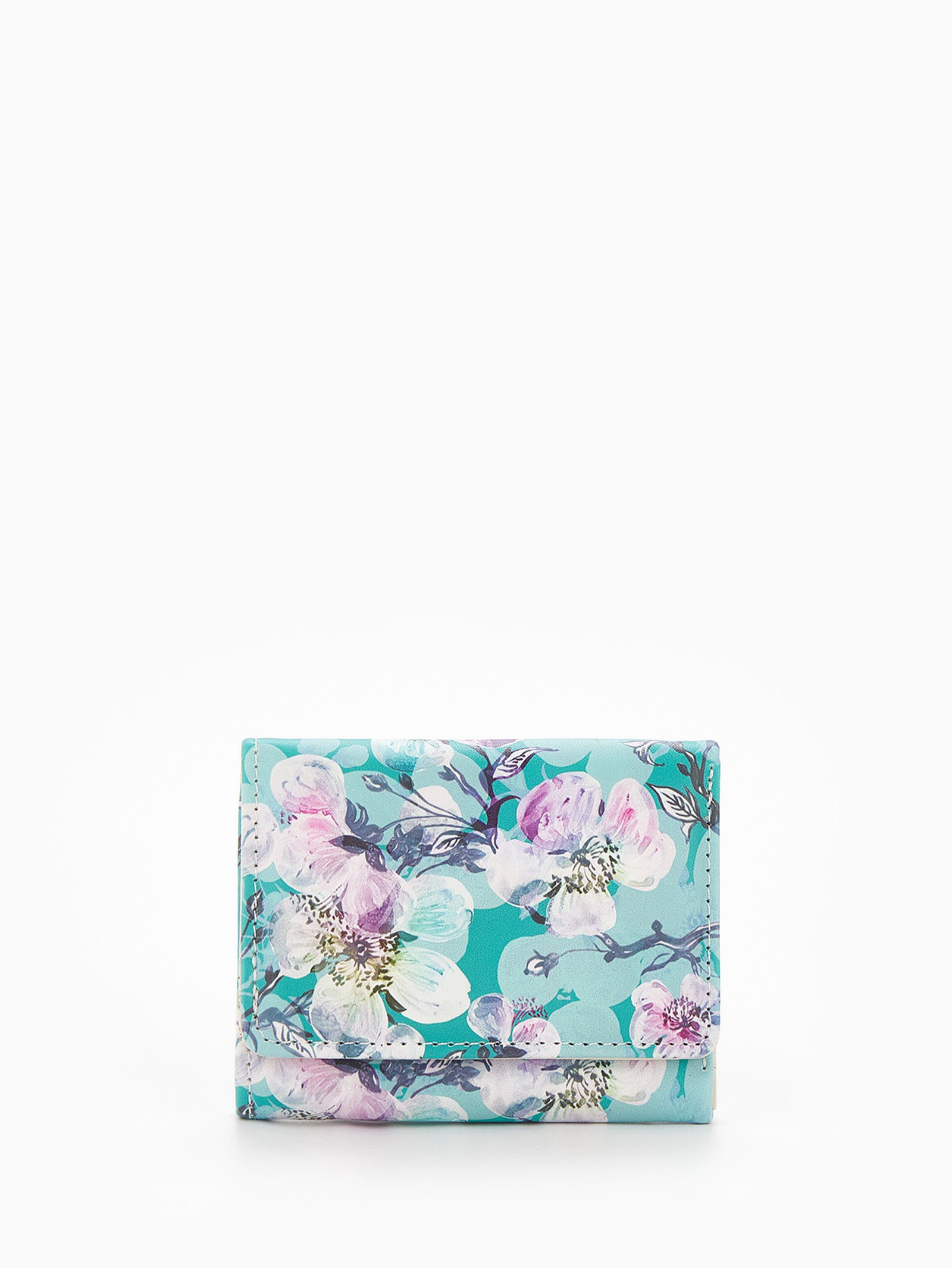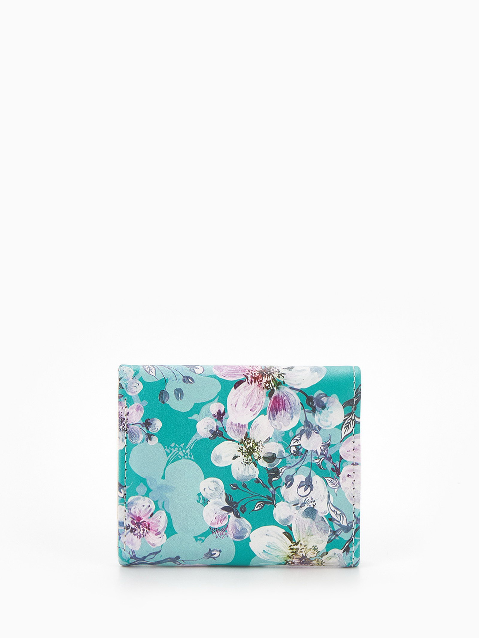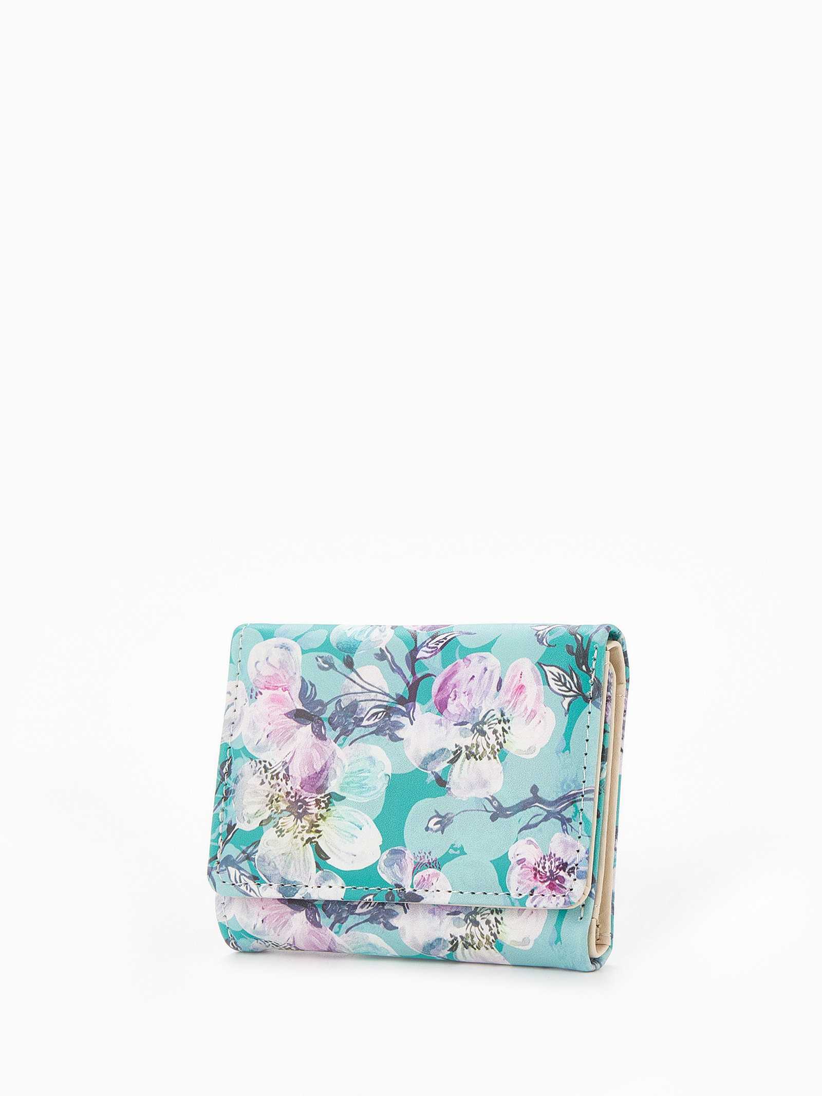 Кошелёк женский на кнопке, 10.5x2.5x8.5 см, с цветочным принтом, бирюзовый, 2.5x10.5x8.5 см., Китай
