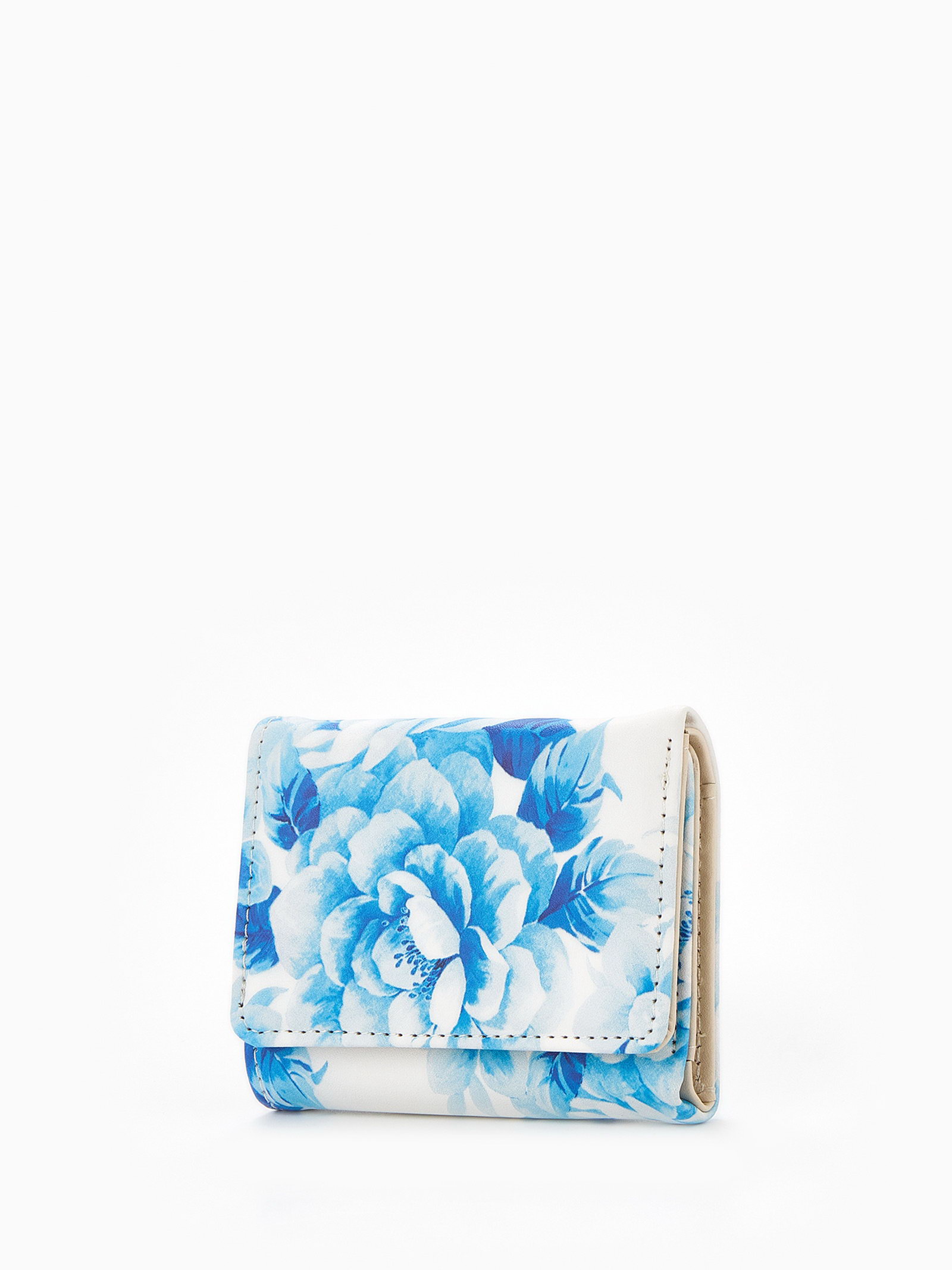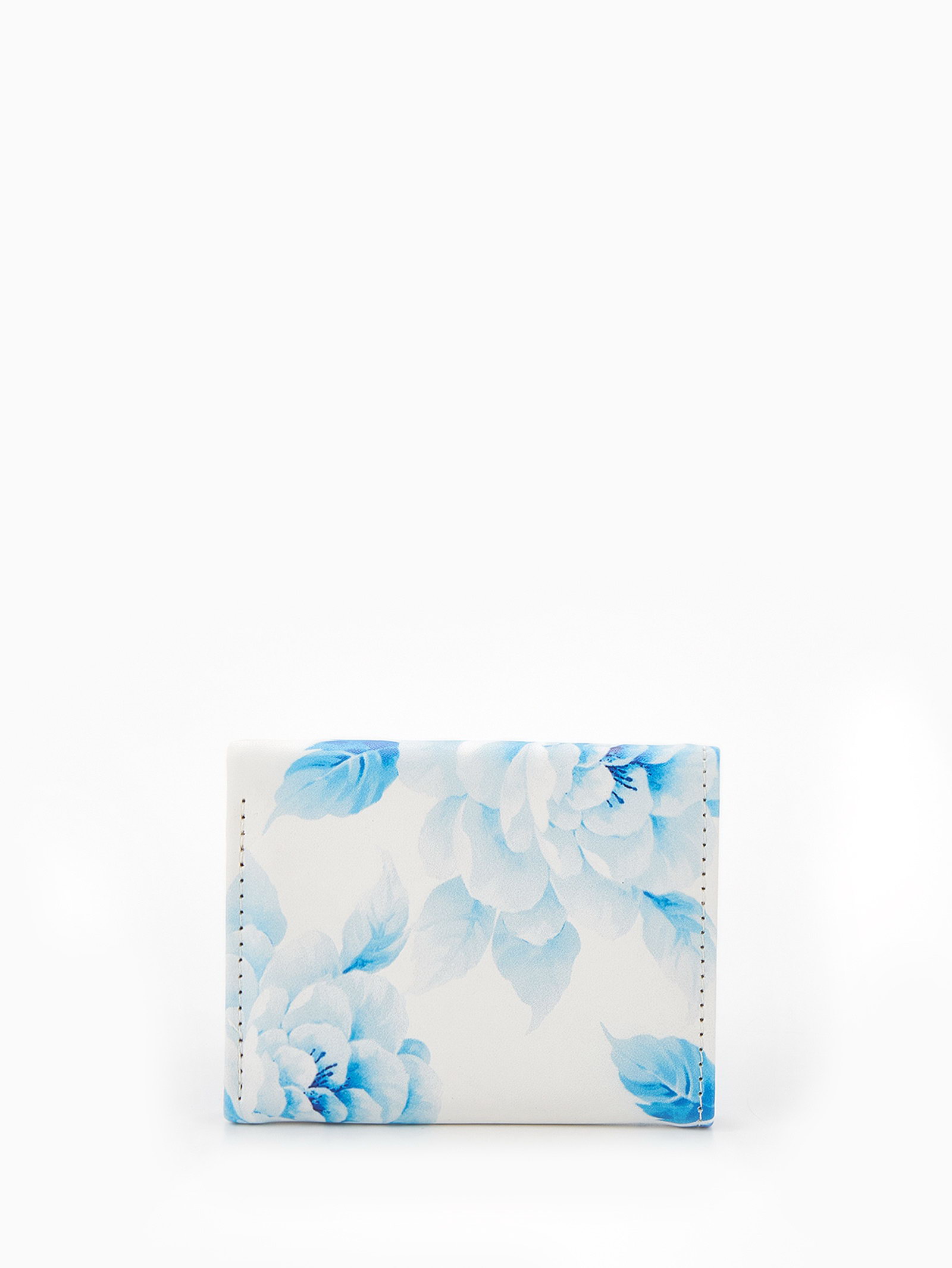Кошелёк женский на кнопке, 10.5x2.5x8.5 см, с цветочным принтом, белый/голубой, 2.5x10.5x8.5 см., Китай