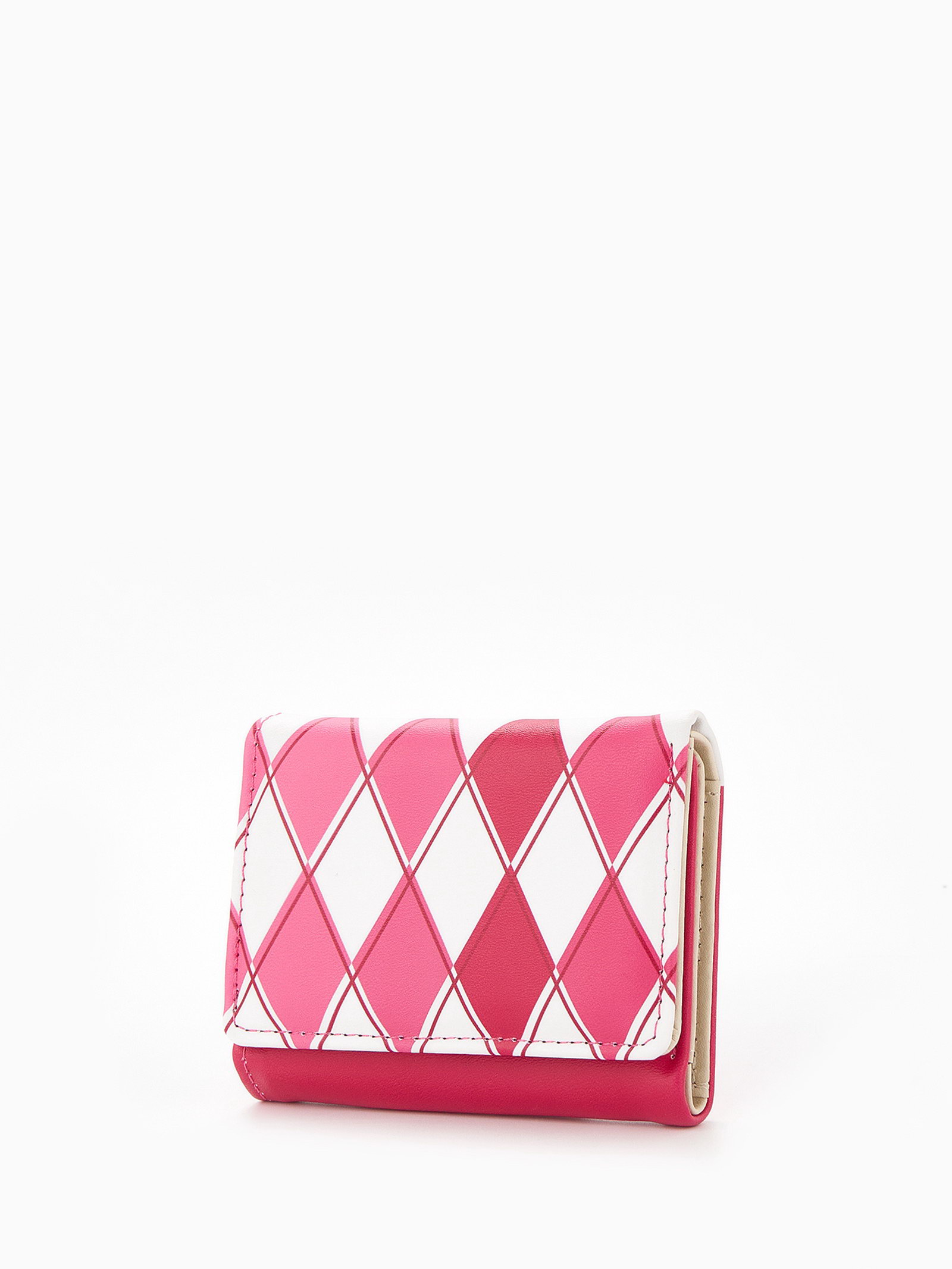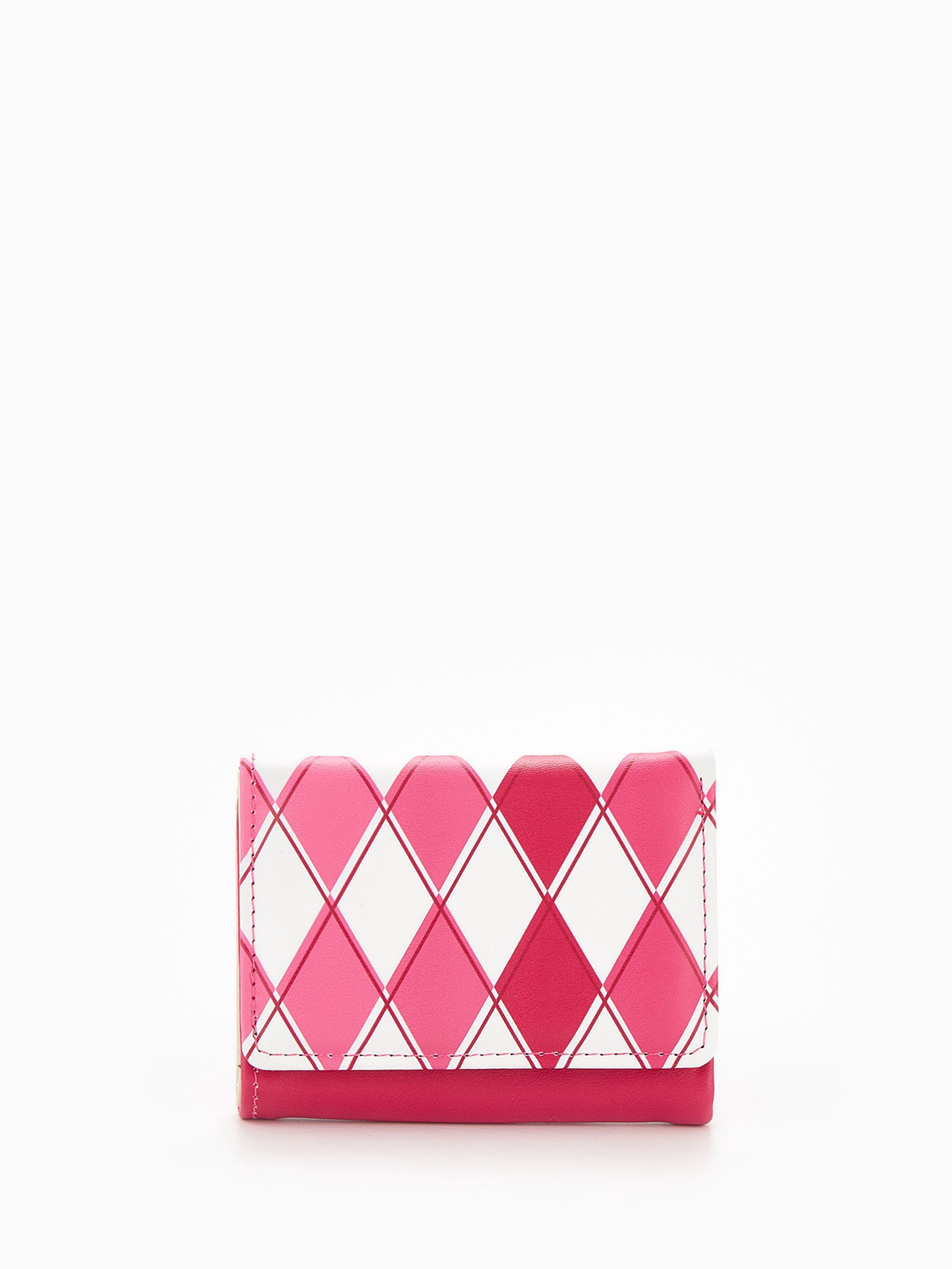 Кошелёк женский на кнопке, 10.5x2.5x8.5 см, с принтом, розовый/белый, 2.5x10.5x8.5 см., Китай
