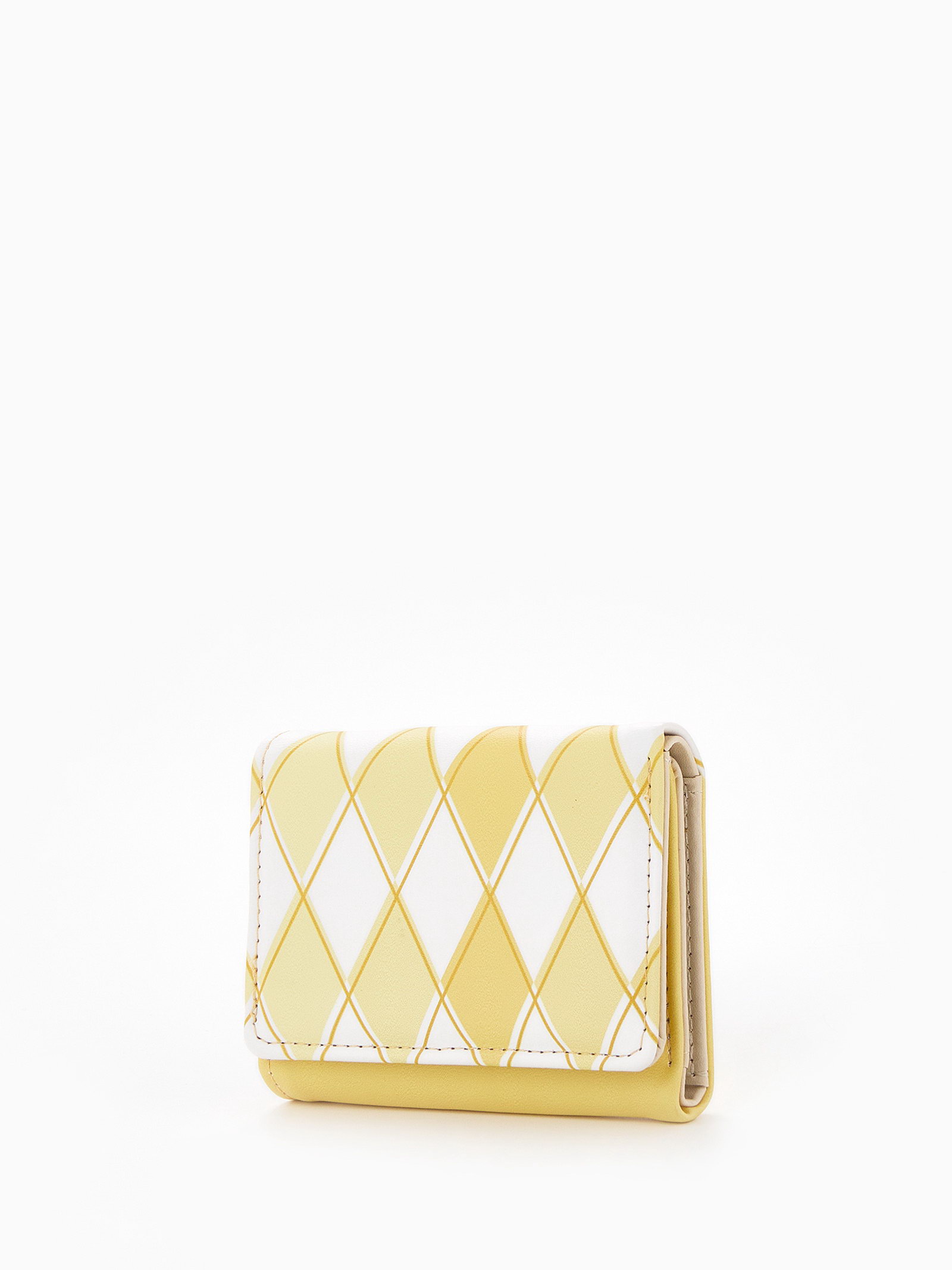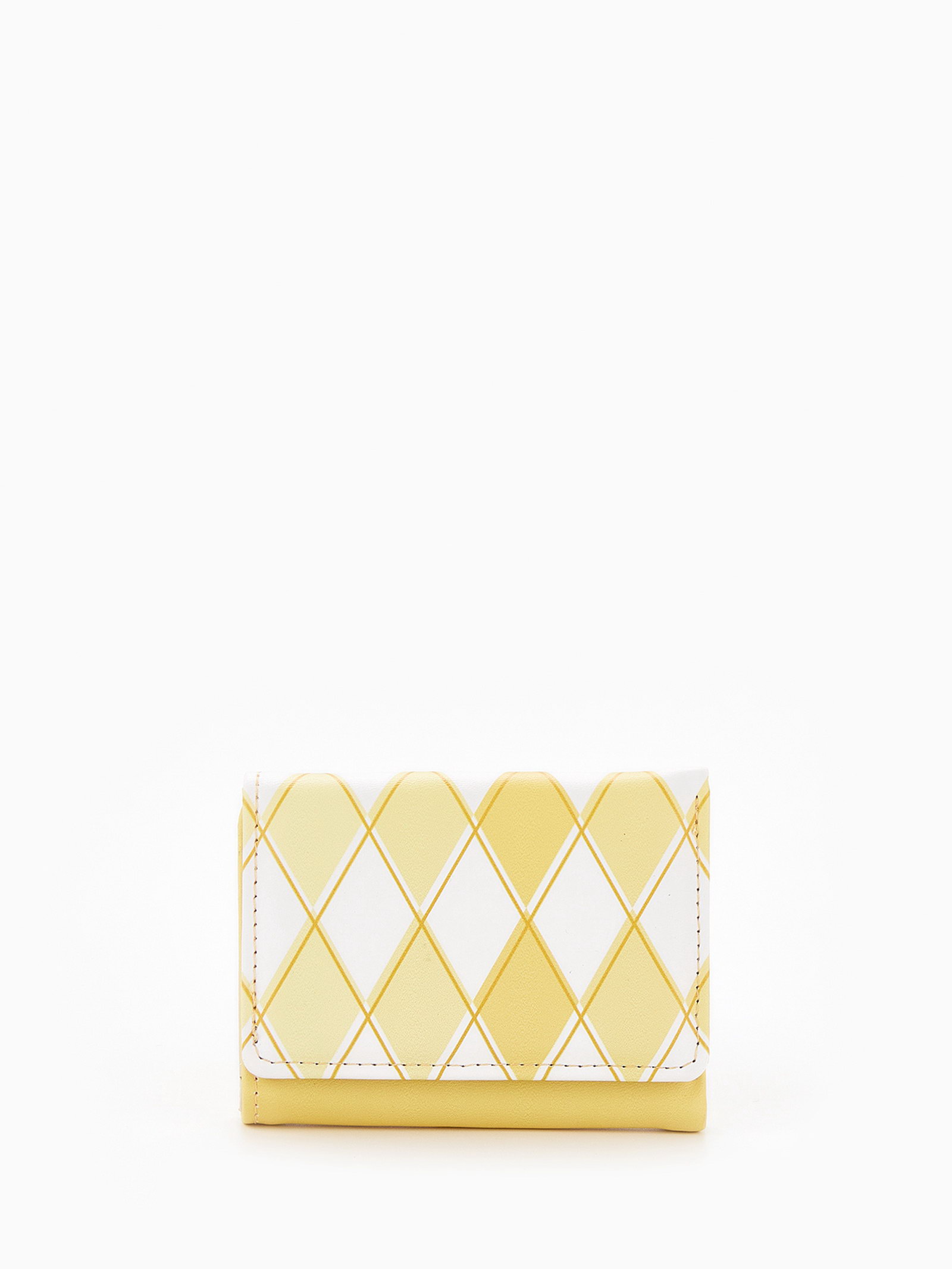 Кошелёк женский на кнопке, 10.5x2.5x8.5 см, с принтом, жёлтый/белый, 2.5x10.5x8.5 см., Китай