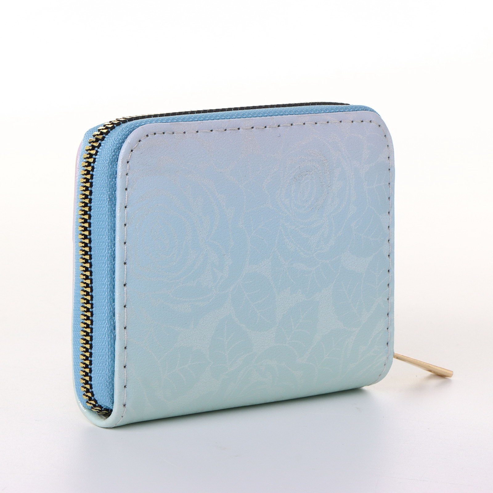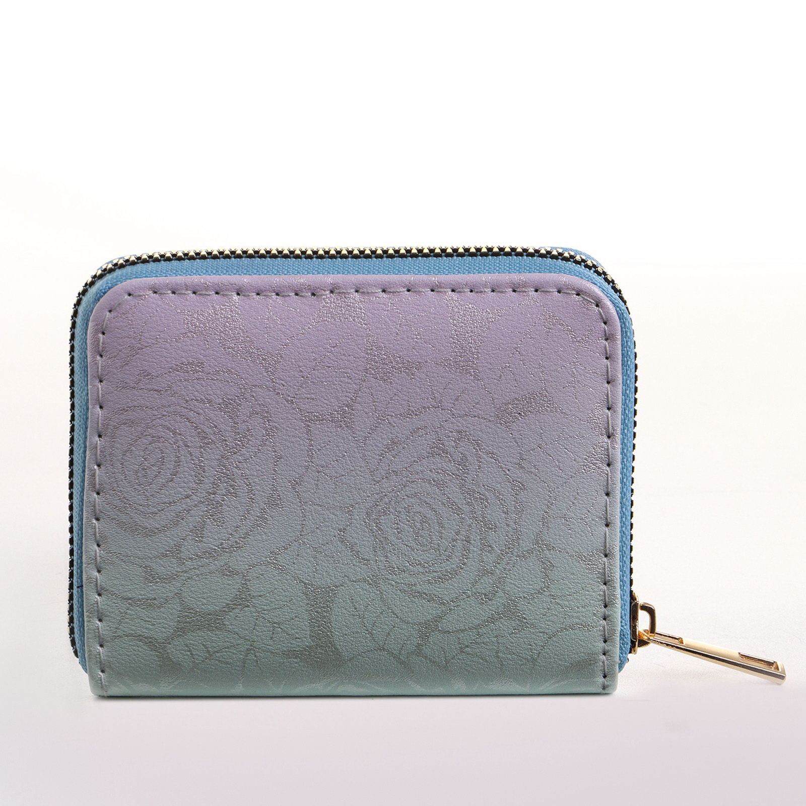 Кошелёк женский на молнии 11x2.5x9 см, градиентный, голубой, 2.5x11x9 см., Китай