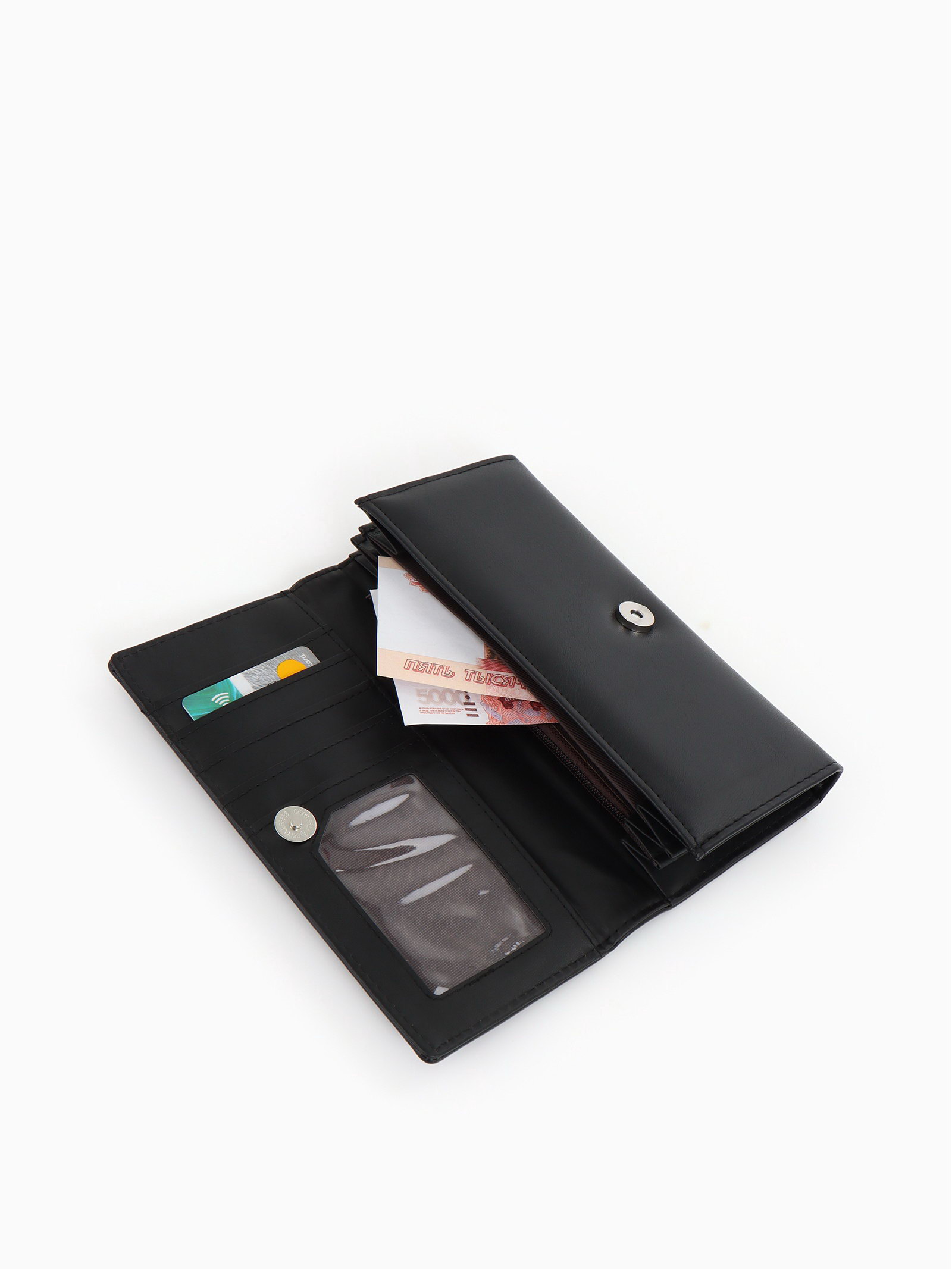 Размер упаковки: 9 x 3 x 19 см. tnved: 4202321000 Количество отделений: 3 Цвет: Чёрный Для кого: Для женщины Вид: Классический Вид застёжки: Магнит Размер: Большой см Рисунок: Нет Отдел для монет: На молнии внутри Этот женский кошелек с магнитной застежкой создан для повседневного использования. Классический черный цвет и продуманная организация внутреннего пространства делают его практичным выбором для тех, кто ценит порядок в личных вещах. Особенности конструкции