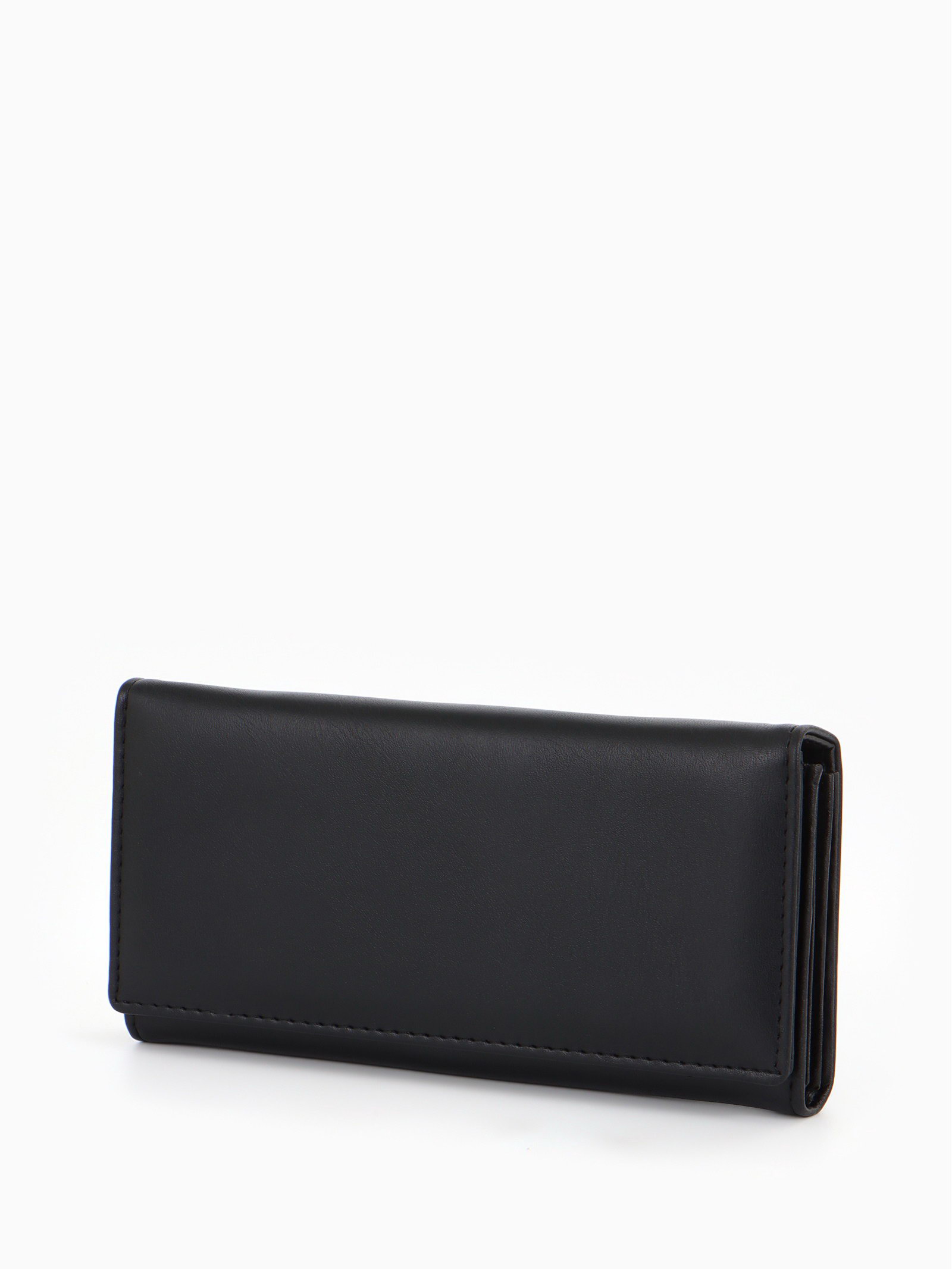 Кошелёк женский на магните, 19x3x10 см, однотонный, чёрный, 3x19x10 см., Китай