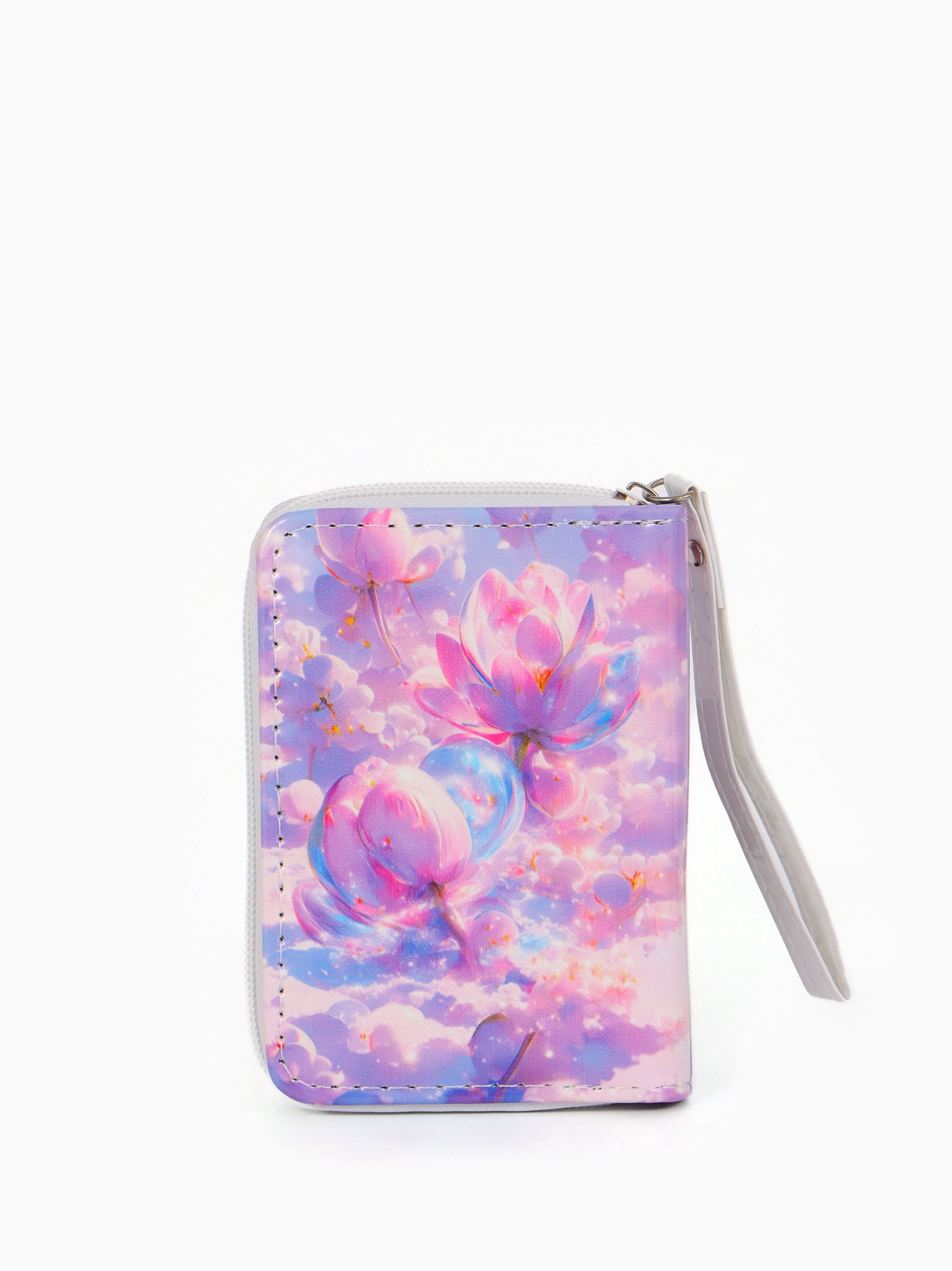 Кошелёк на молнии, 12x1.5x9 см, с принтом, сиреневый, 1.5x12x9 см., Китай