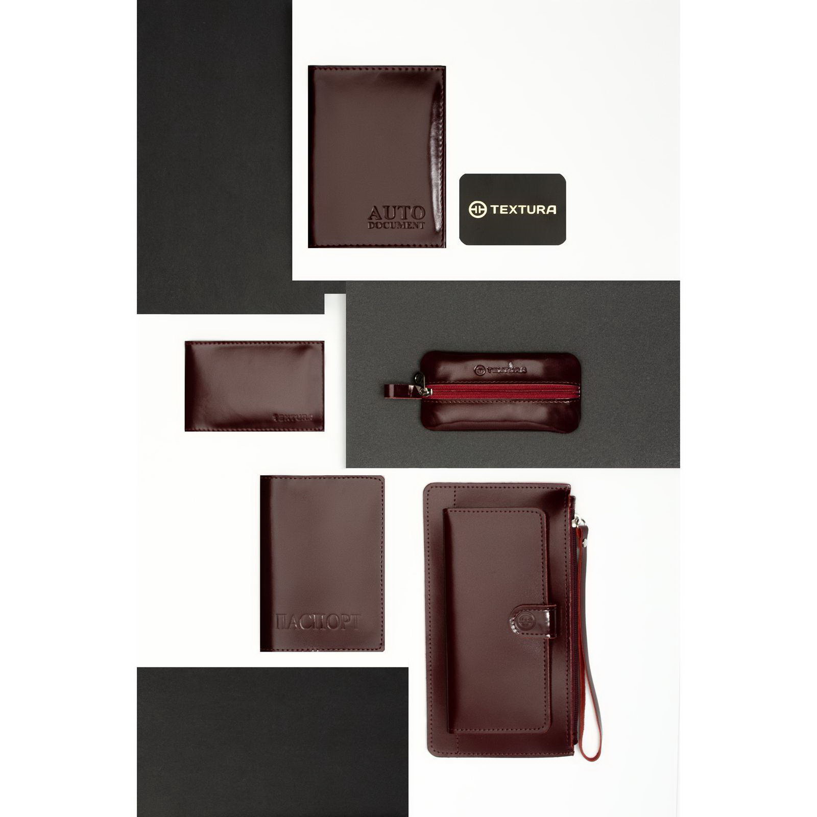 Обложка для автодокументов цвет бордовый, 1x10x13 см., TEXTURA, Россия