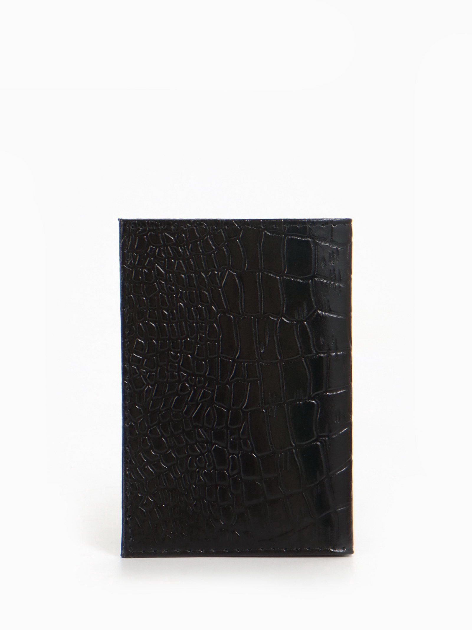 Обложка для паспорта, тиснение, натуральная кожа, чёрная, 0.5x9.5x13.5 см., Россия