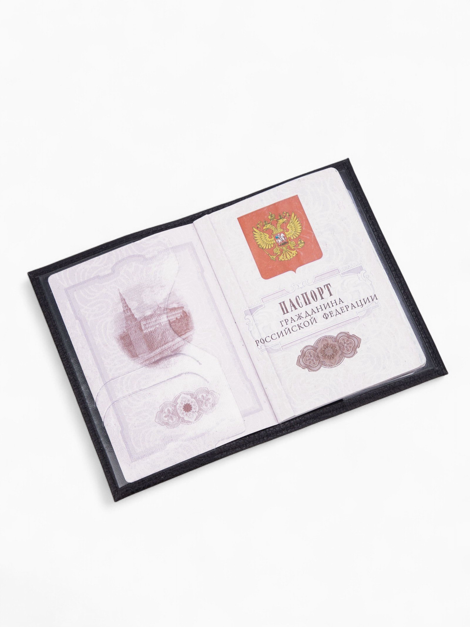 Обложка для паспорта, чёрная, 0.5x9.5x13.5 см., Россия