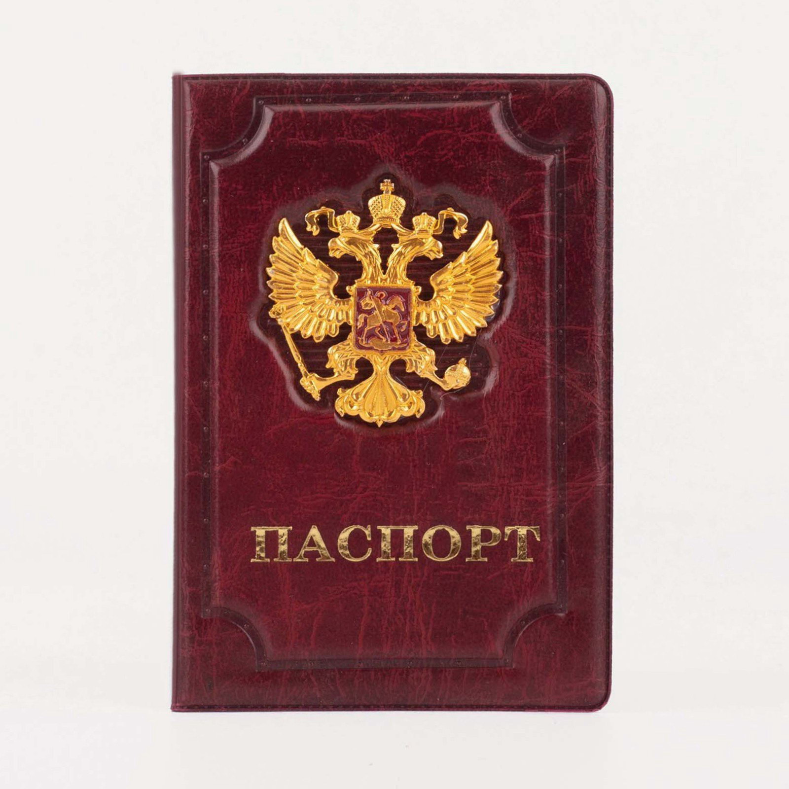 Обложка для паспорта, с металлическим гербом, рельефная, бордовая, 0.5x9.5x13.5 см., Россия
