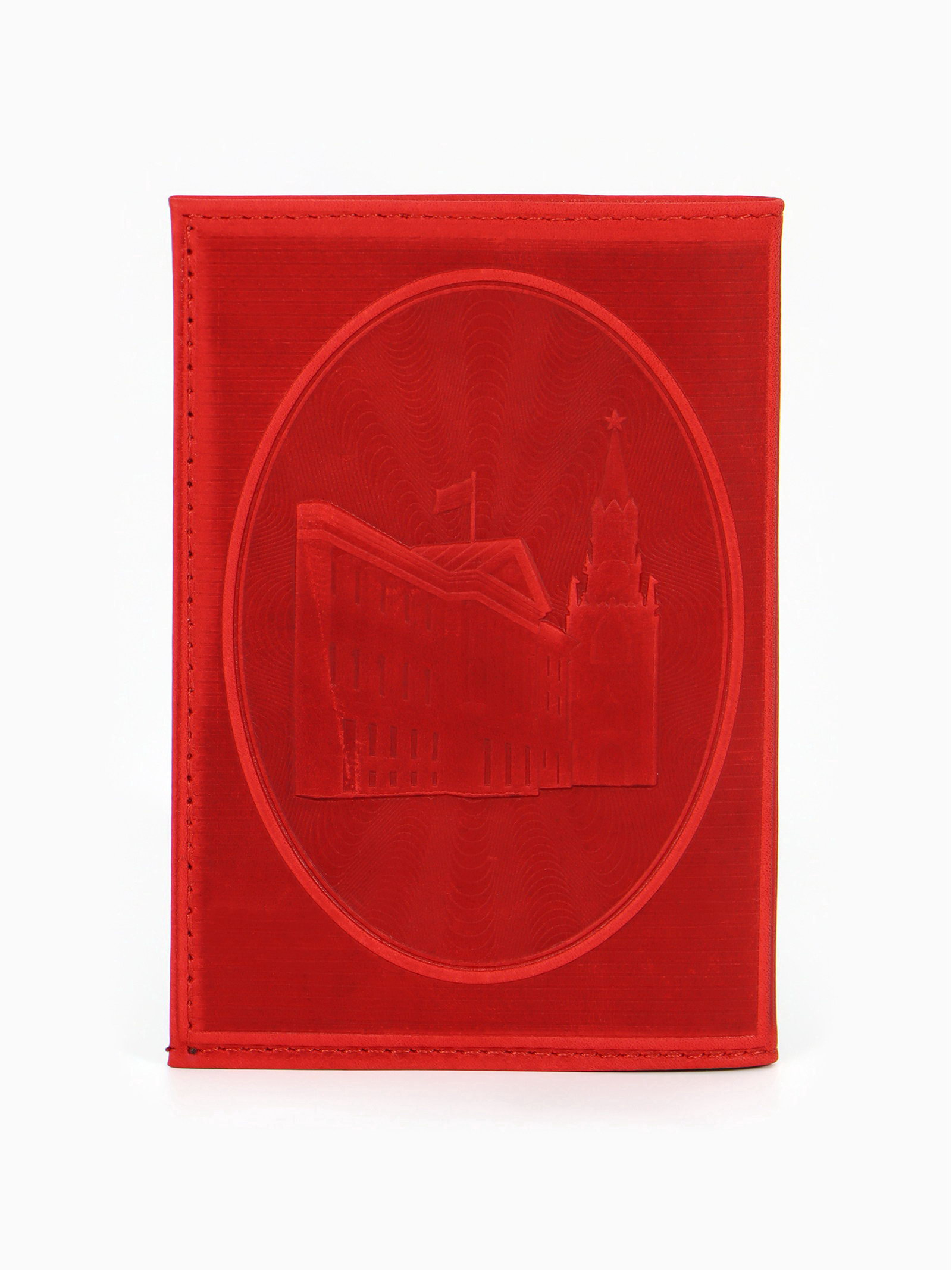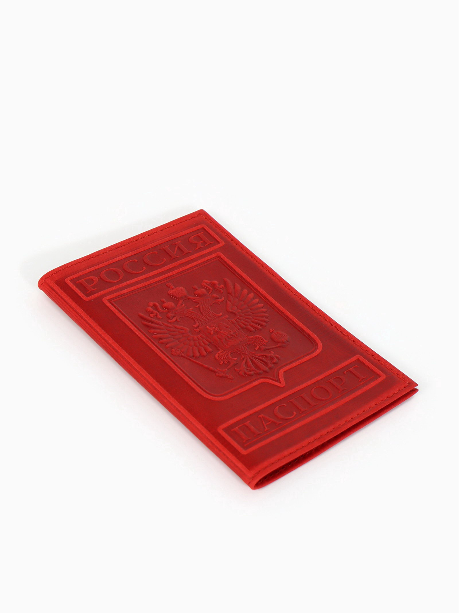 Обложка для паспорта, натуральная кожа, с гербом, красная, 0.5x19.5x13.7 см., Россия