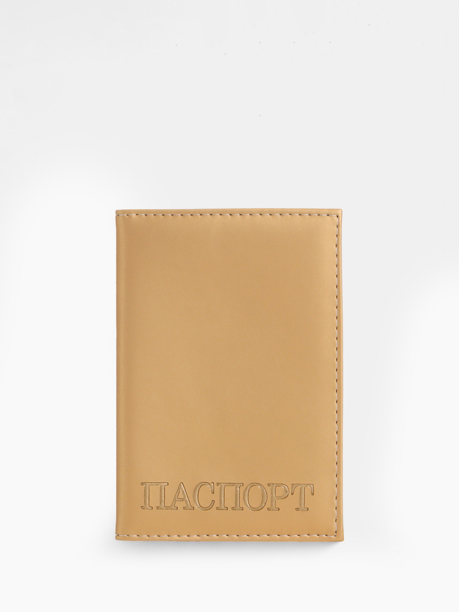 Обложка для паспорта, с тиснением, бежевая, 0.3x9.5x13.5 см., Россия