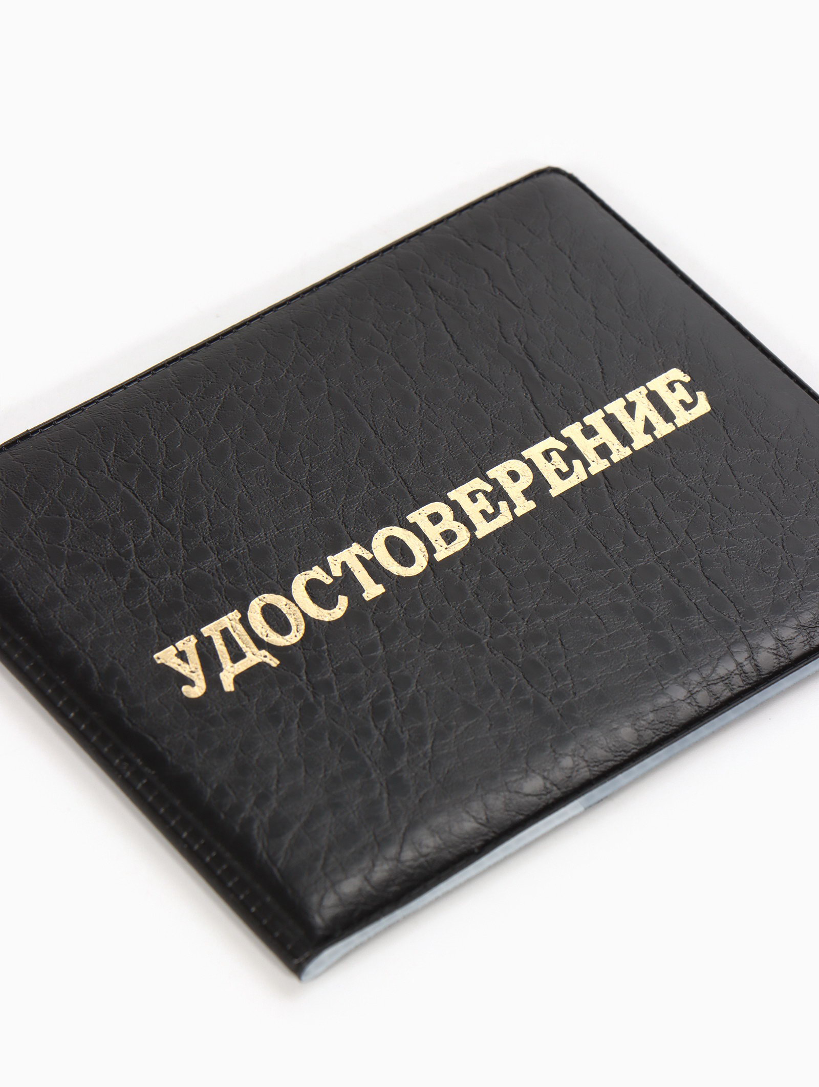 Обложка Удостоверение 11*0.3*8 см, Иск кожа, тисн. золото, черный, Россия