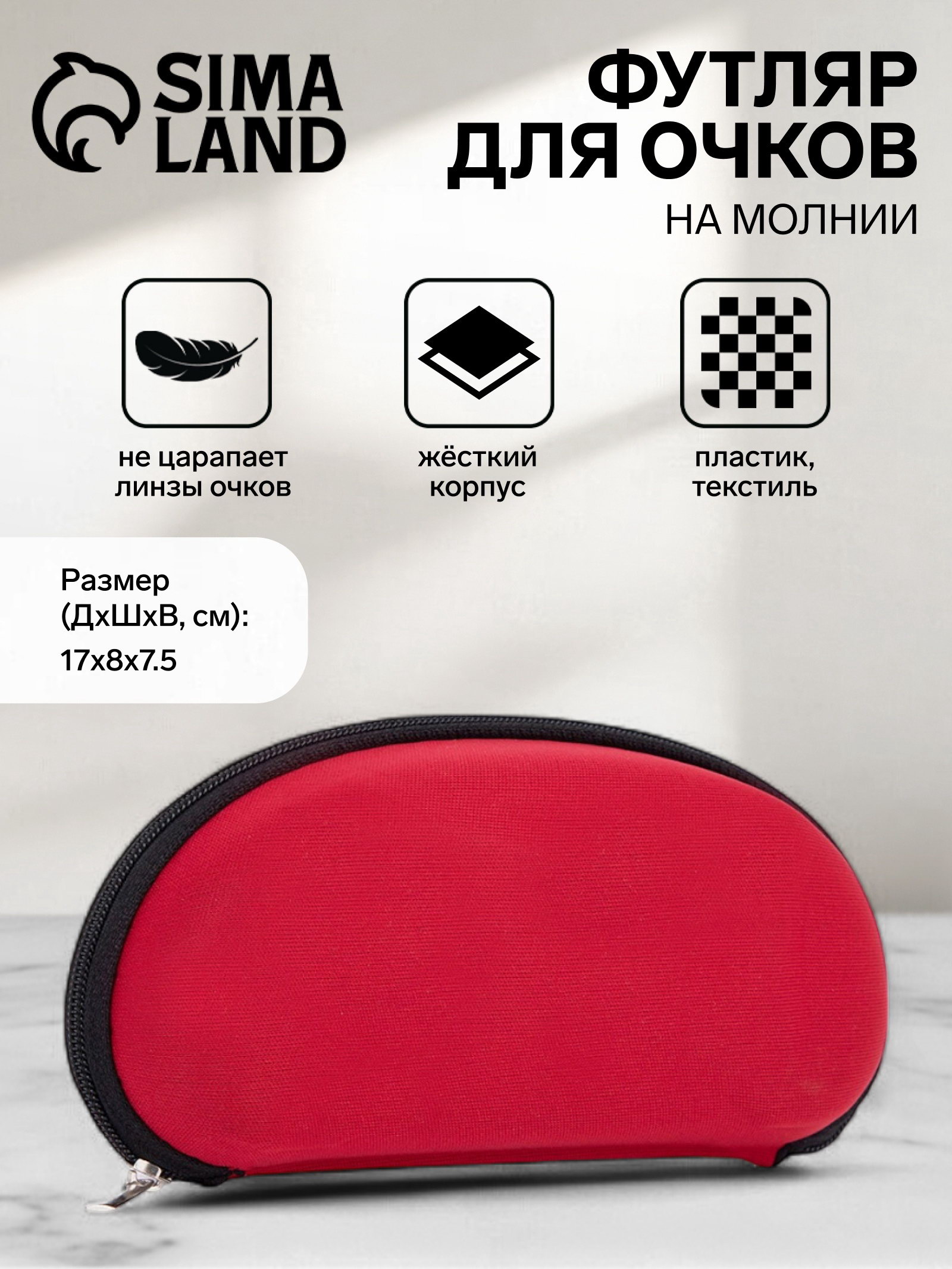Футляр для очков на молнии, однотонный, размер 17x8x7.5 см, красный, 8x17x7.5 см., Китай