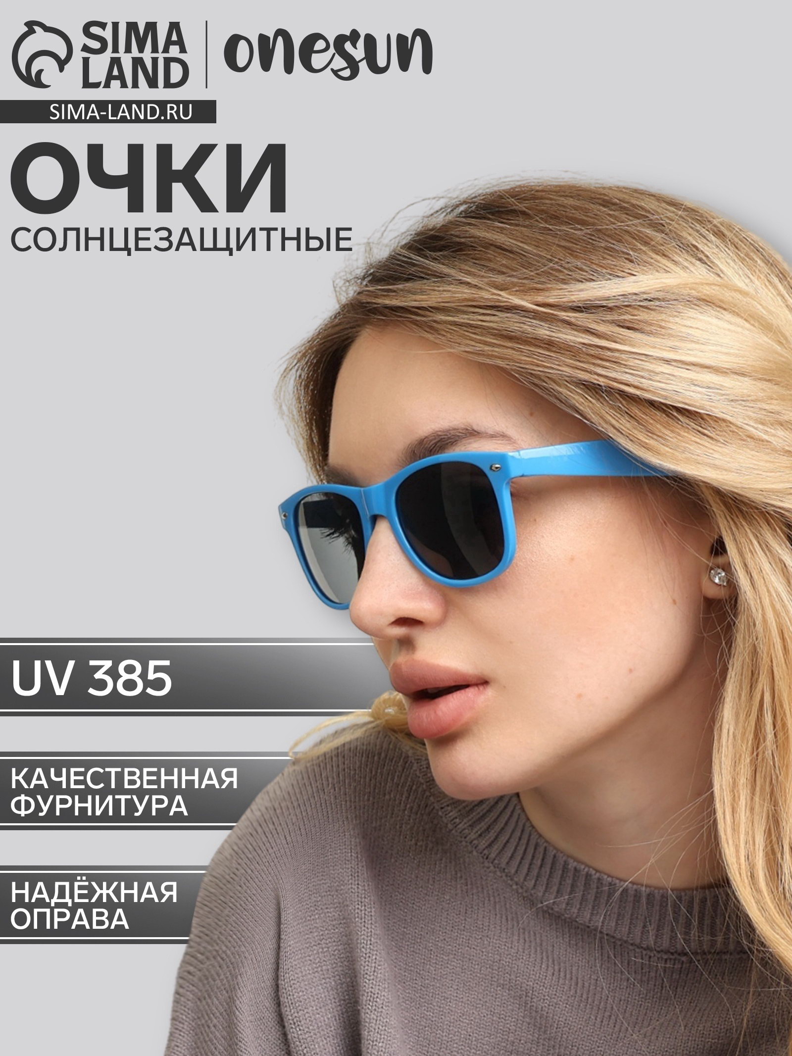 Очки солнцезащитные "OneSun. Wayfarer", uv 385, синий, чёрный, 4.5x14x3 см., onesun, Китай