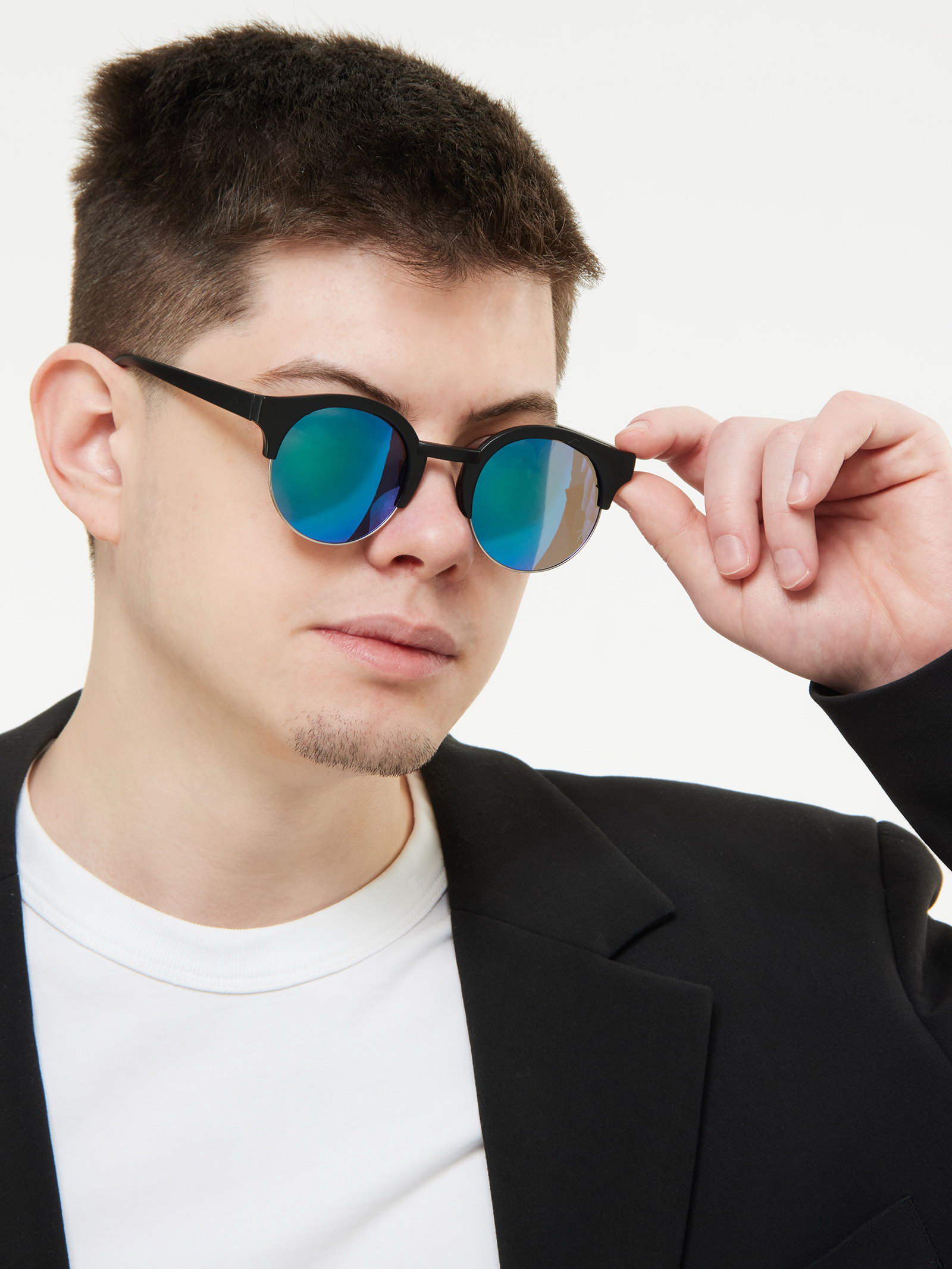 Цвет линз: Синий, Фиолетовый, Хамелеон Размер упаковки: 5 x 3 x 14 см. Цвет оправы: Чёрный Для кого: Для женщины Наличие флекс-дужки: Нет Материал оправы: Пластик Материал линзы: Пластик Материал линзы: Пластик tnved: 9004110000 Антиблик: Нет Градиент: Да Поляризация очков: Нет Регулируемый наносник: Нет Тип оправы: Полуободковые Форма оправы: Панто (нерд) Солнцезащитные очки уберегут глаза от вредных ультрафиолетовых лучей, а благодаря стильному минималистичному дизайну станут красивым акцентом в вашем повседневном или деловом образе! Крутой декоративный аксессуар хорошо будет смотреться и с молодежным стилем кэжуал, и со строгой классикой. Они пригодятся вам для создания красивого аутфита на фотосессию, вечеринку и другие мероприятия. Особенности: