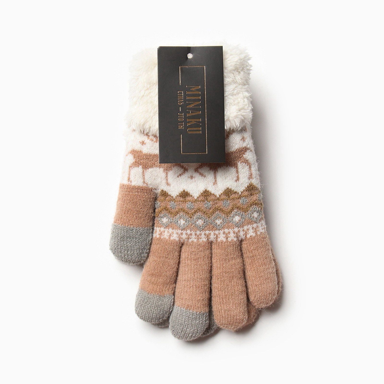 Перчатки женские на искусственном меху 22 см бежевый, MINAKU, Китай