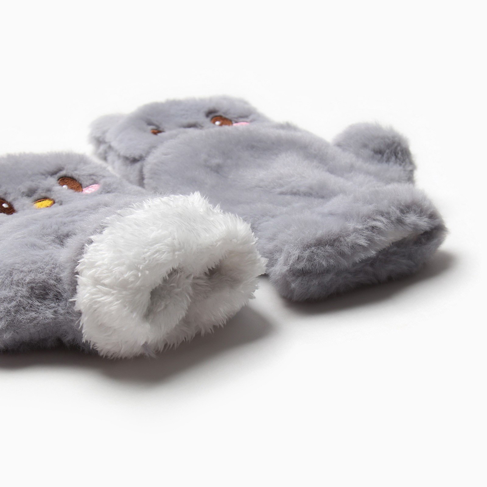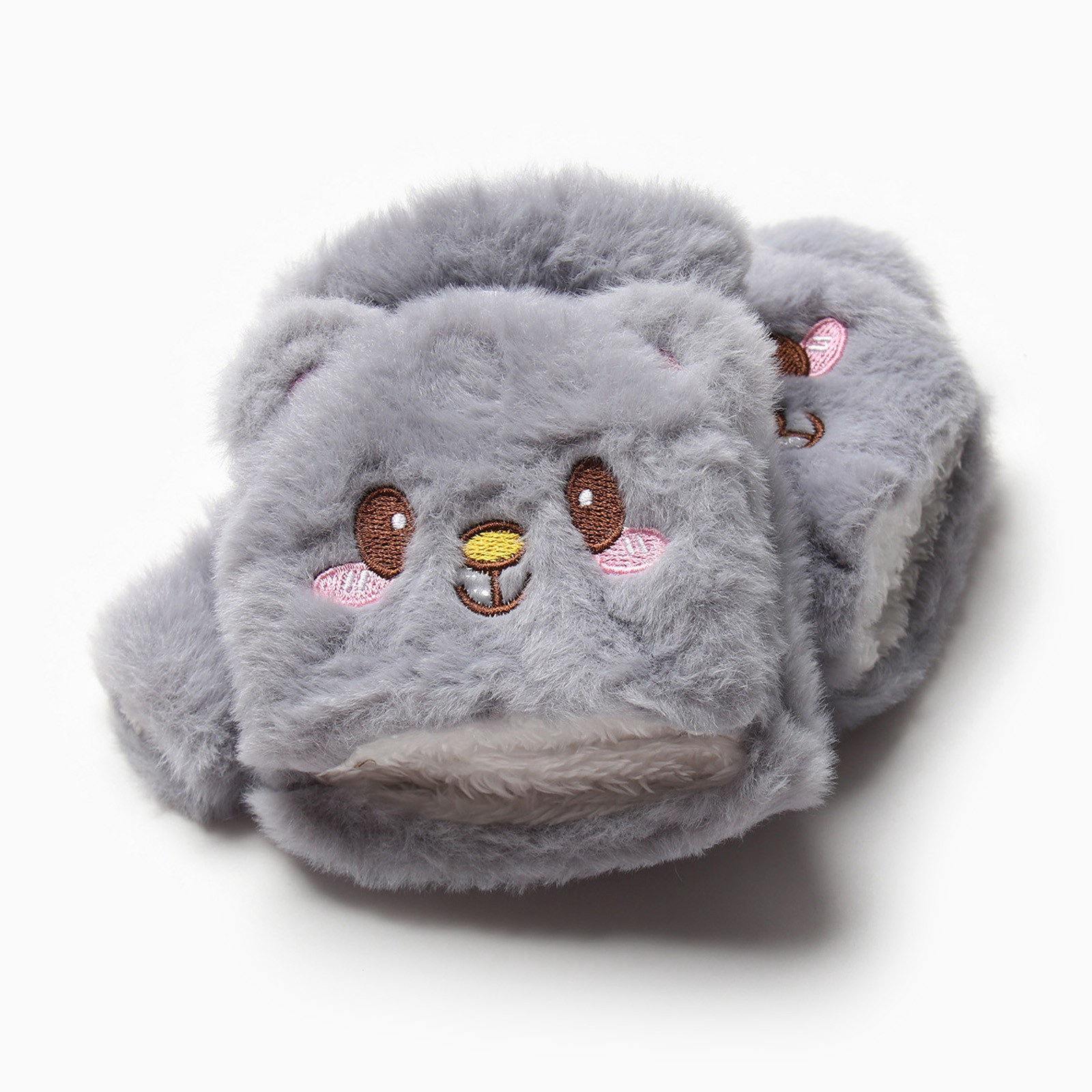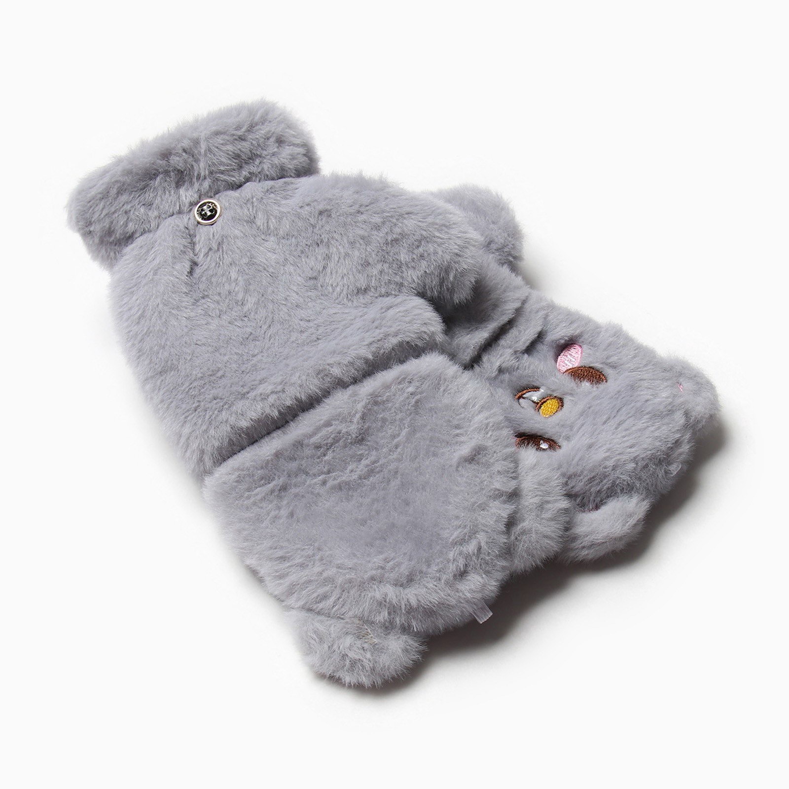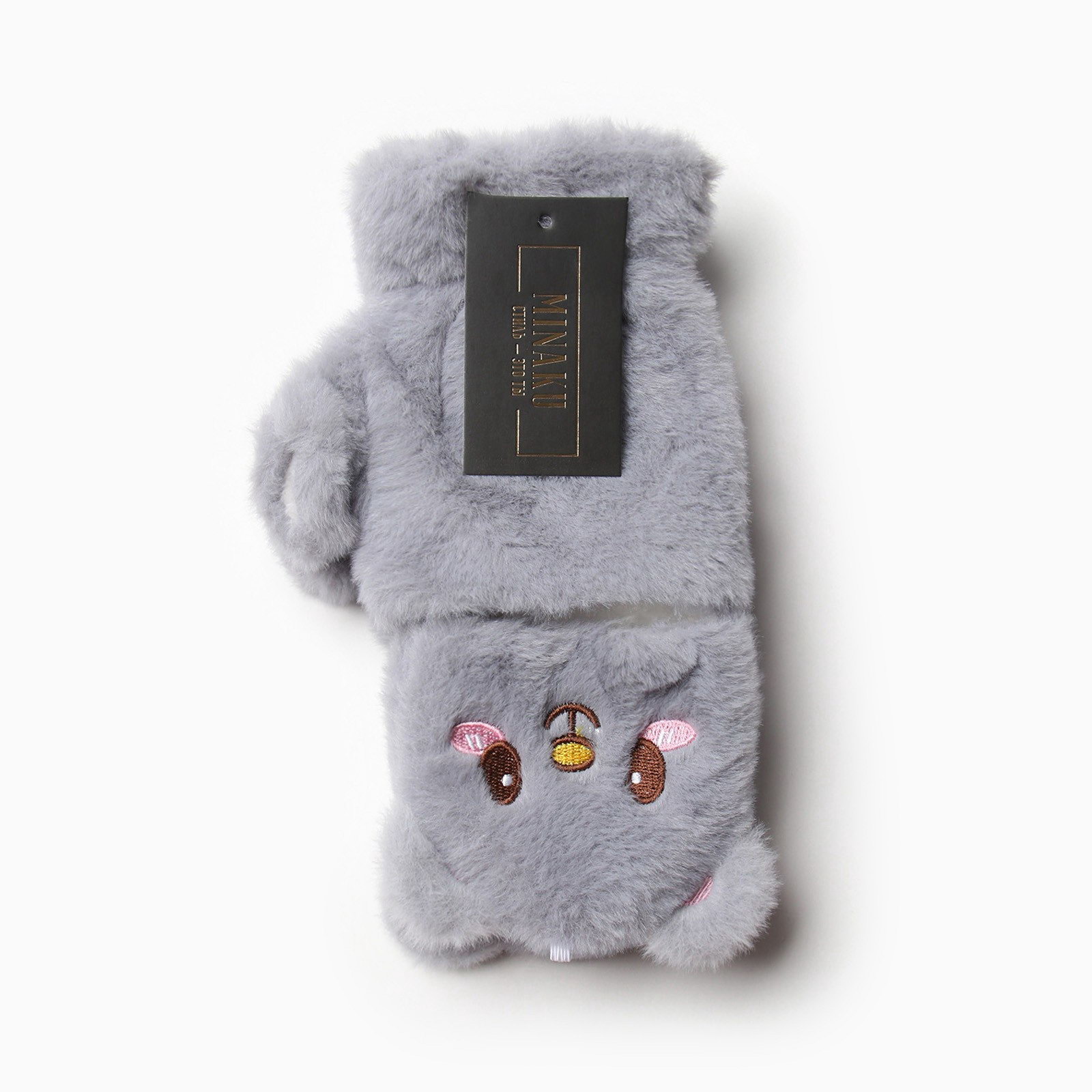 Варежки - митенки женские "Мишка", размер 24 см, серые, MINAKU, Китай