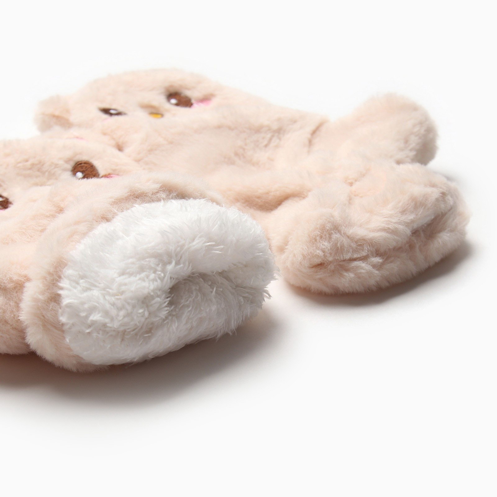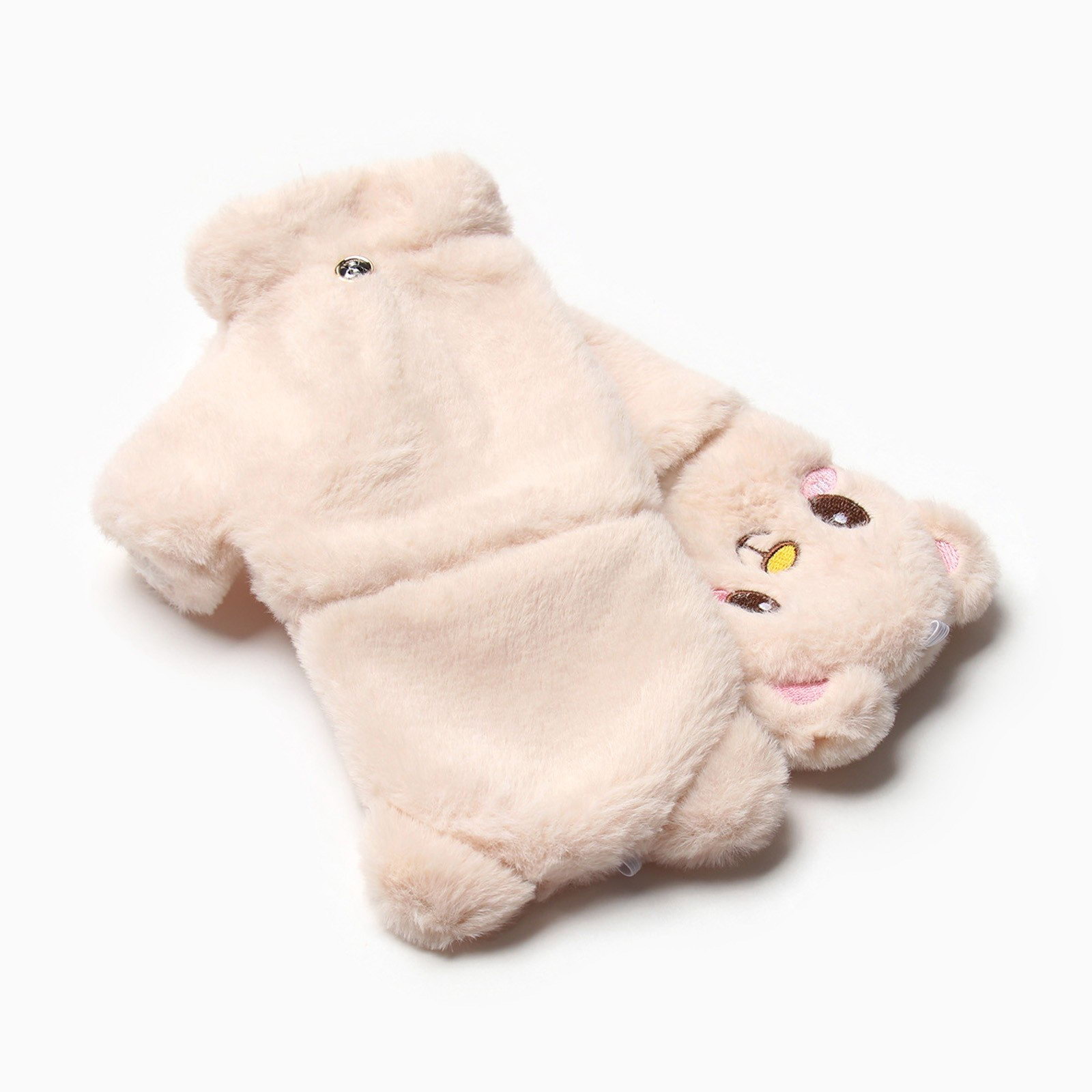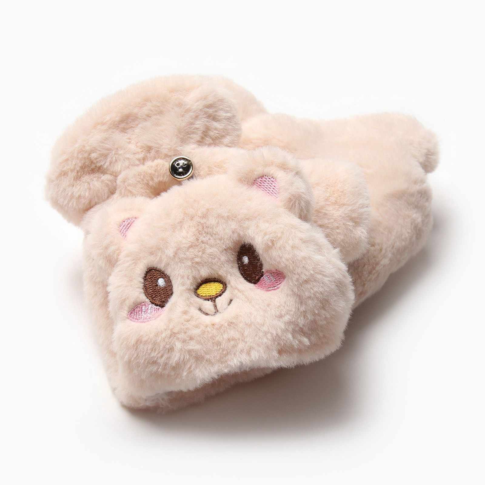 Варежки - митенки женские "Мишка", размер 24 см, бежевые, MINAKU, Китай