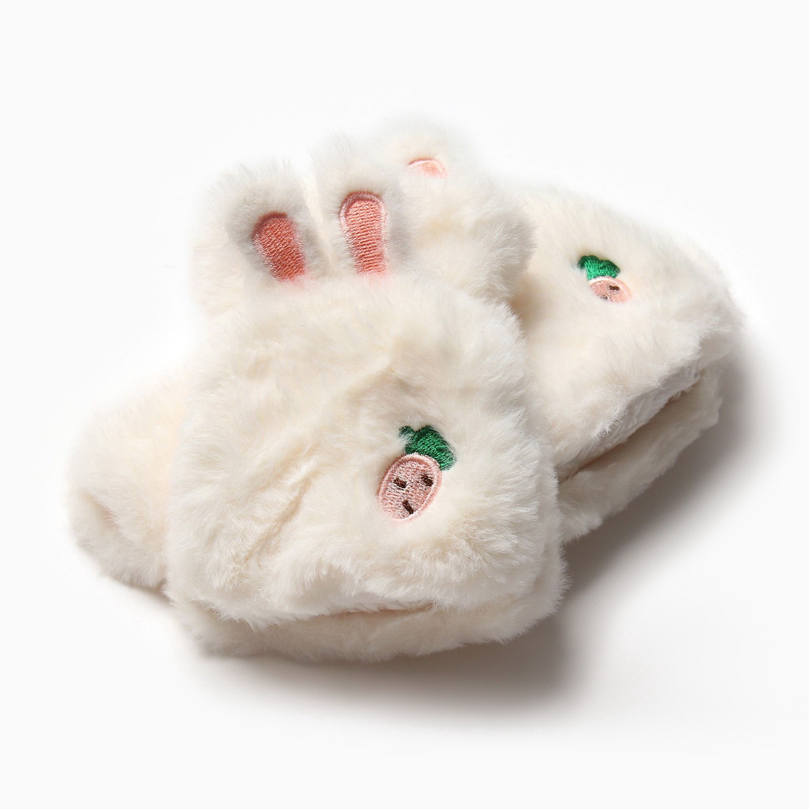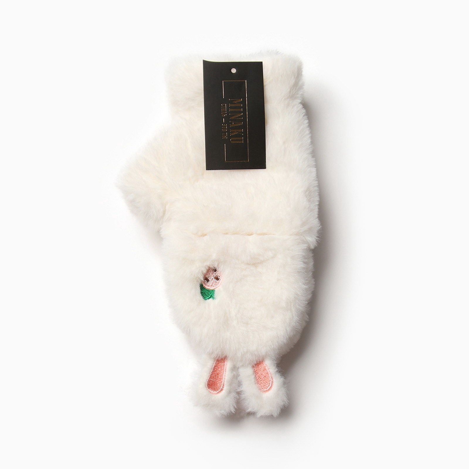Варежки - митенки женские "Зайка", размер 24 см, белые, MINAKU, Китай