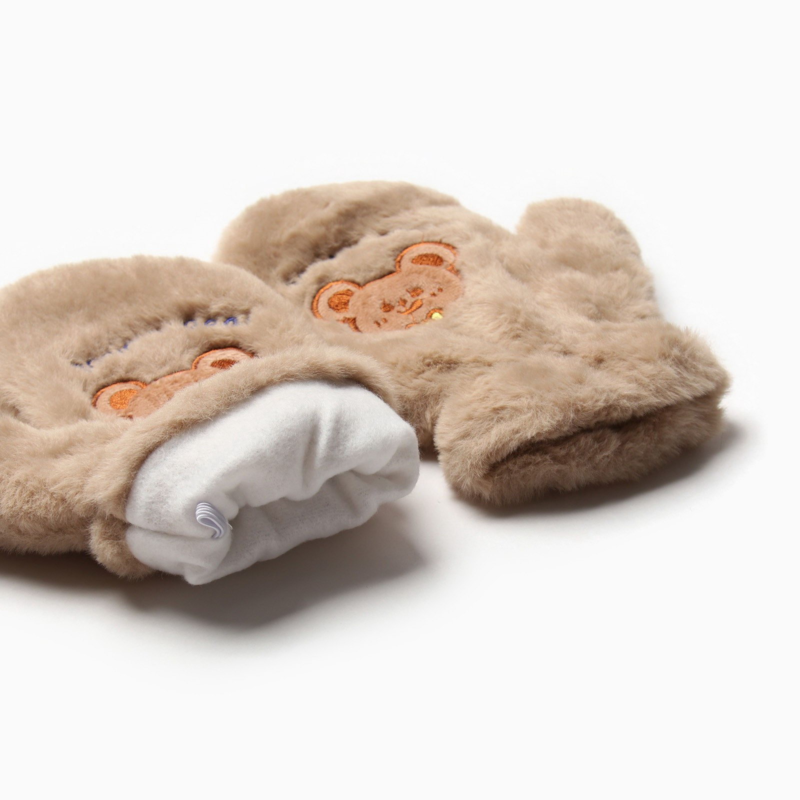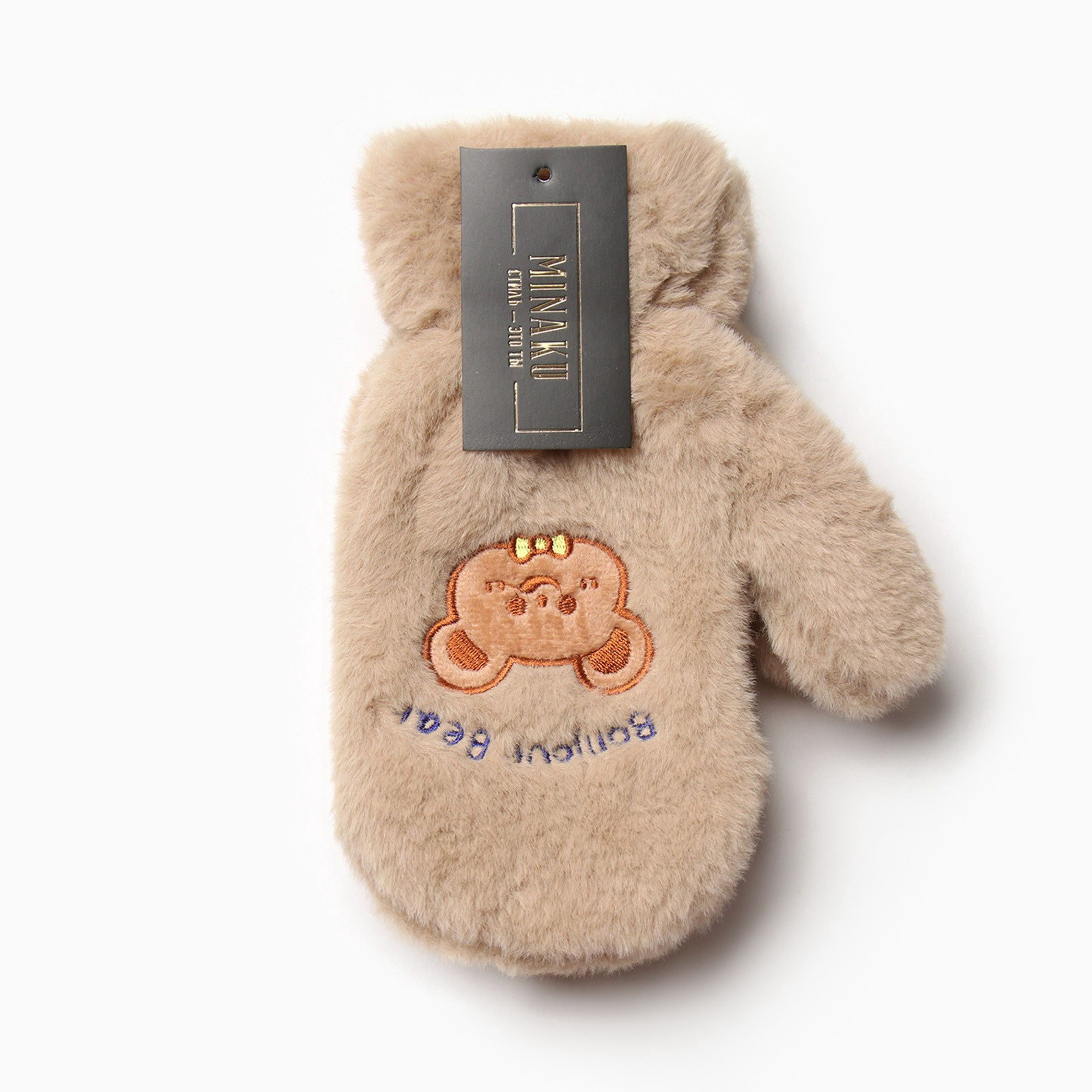 Варежки подростковые Мишка вышивка 24 см цвет коричневый, MINAKU, Китай