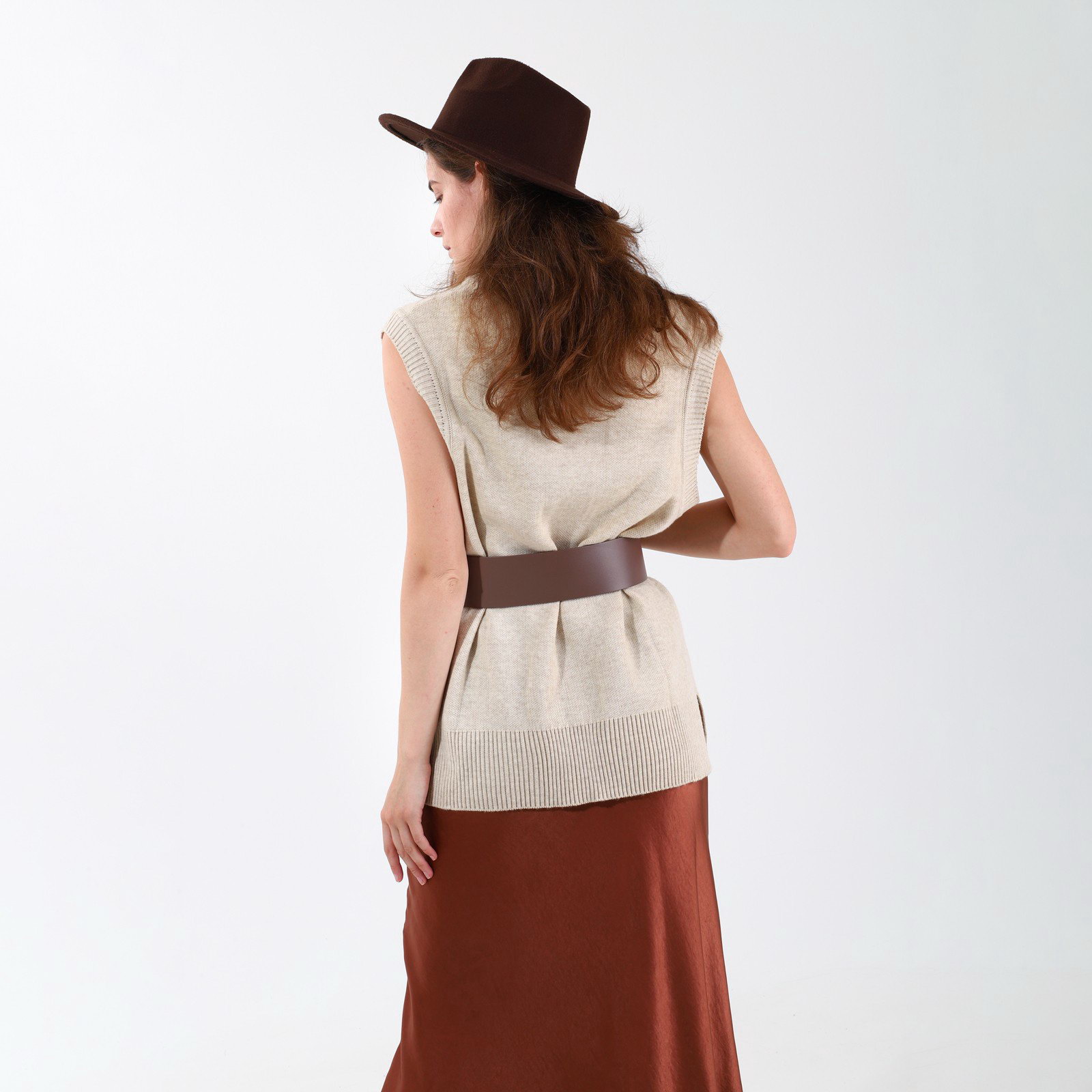 Ремень женский широкий, 145x8.5 см, коричневый, 0.3x8.5x145 см., Китай