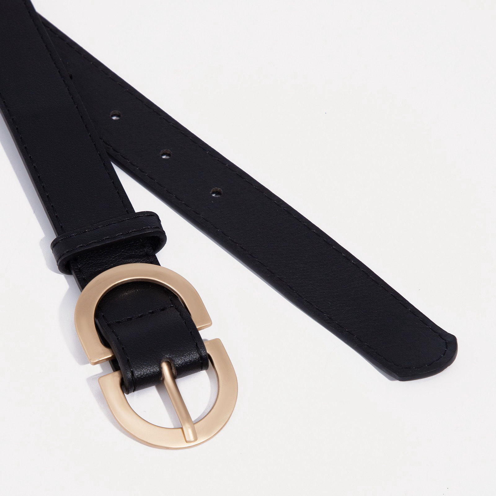 Ремень женский, 105x2.8 см, классическая пряжка металл, золотистая, чёрный, 2.8x105 см., Китай