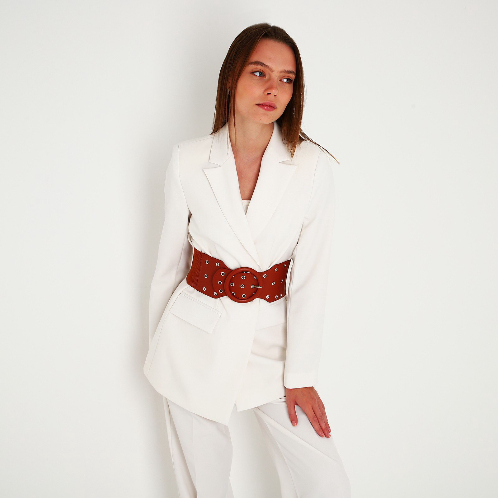 Ремень-резинка женский широкий, с люверсами, 75x10 см, пряжка пластик, рыжий, 10x75 см., Китай