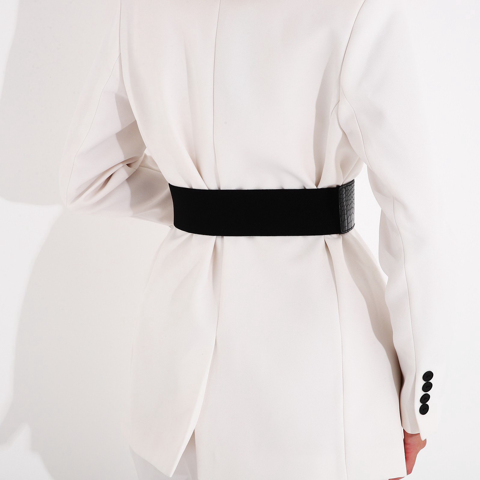 Ремень женский, ширина 10 см, на резинке, пряжка металл, цвет чёрный, 10x85x0.3 см., Китай
