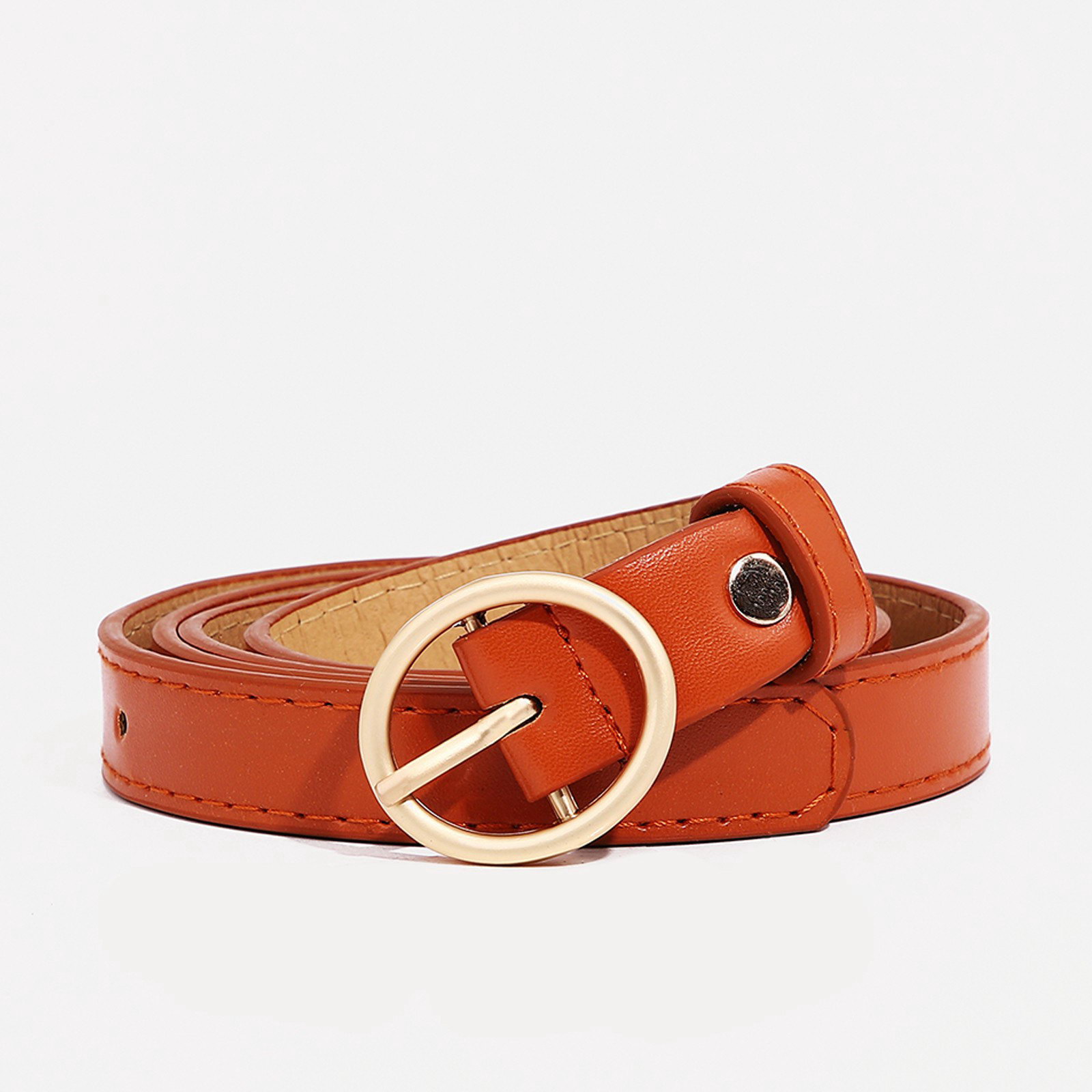 Ремень женский тонкий с винтом, 110x2 см, пряжка металл, матовая, золотистая, рыжий, 2x110x0.2 см., Китай