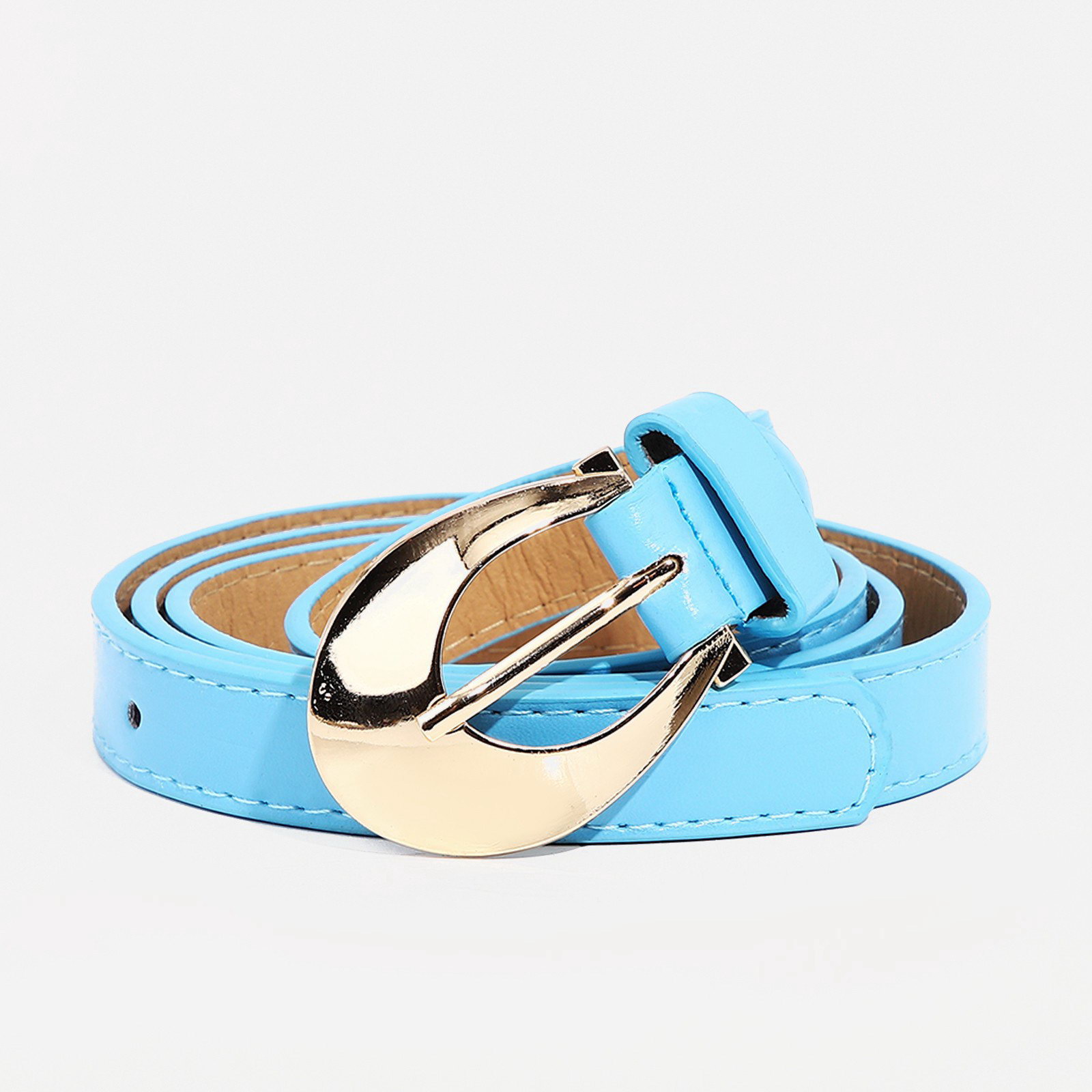 Ремень женский тонкий с винтом, 110x1.8 см, пряжка металл, золотистая, голубой, 1.8x110x0.2 см., Китай