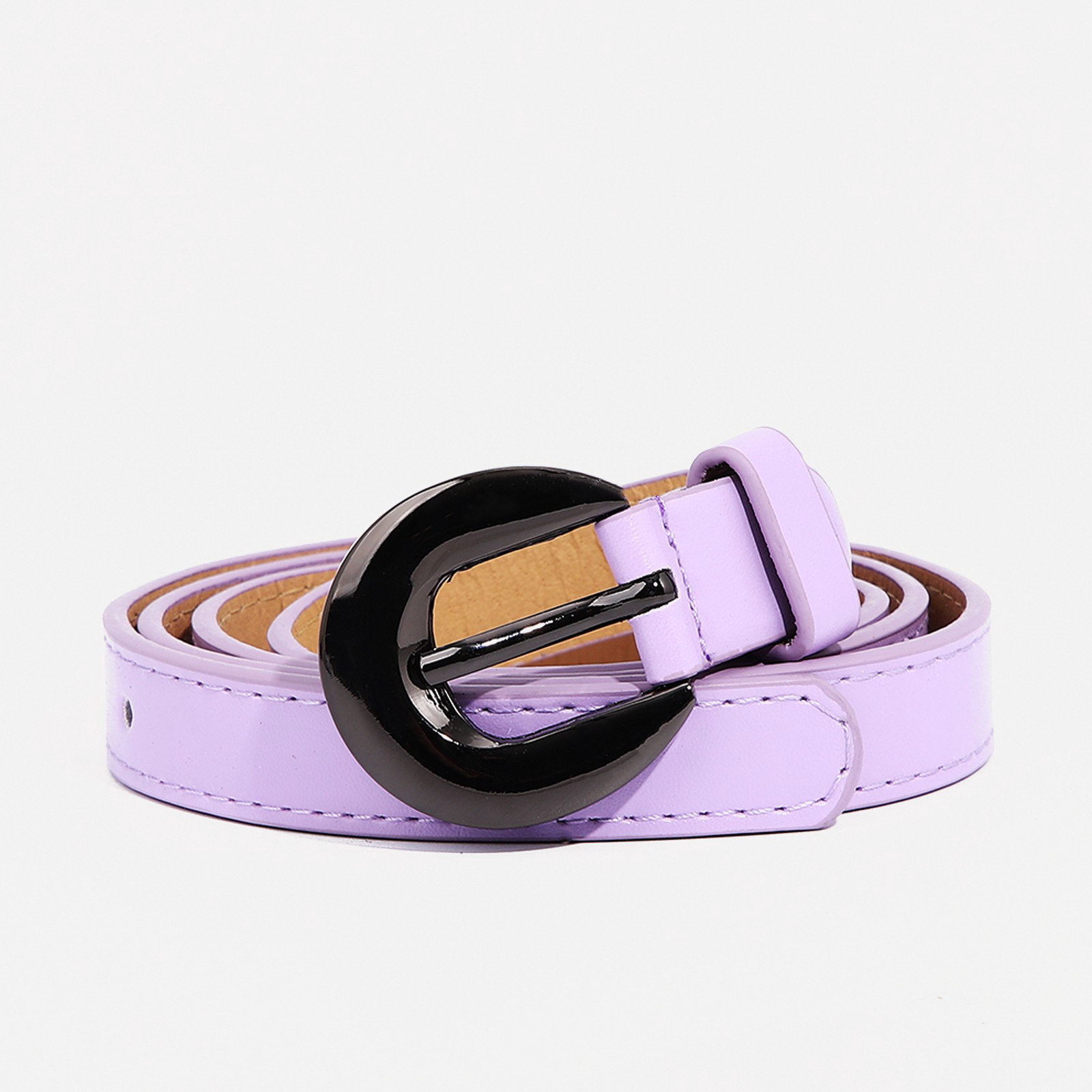 Ремень женский тонкий с винтом, 110x2 см, чёрная пряжка металл, сиреневый, 2x110x0.2 см., Китай