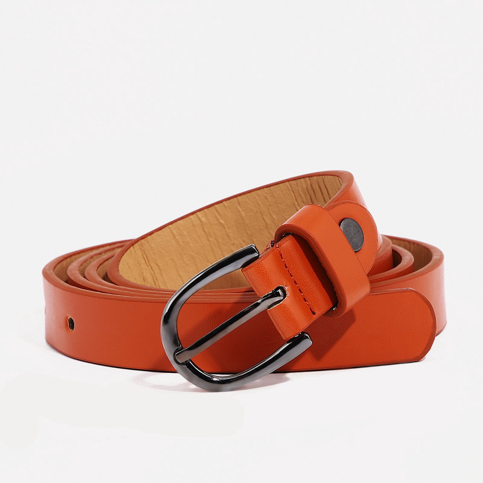 Ремень женский тонкий с винтом, 110x1.8 см, пряжка тёмный металл, рыжий, 1.8x110x0.2 см., Китай