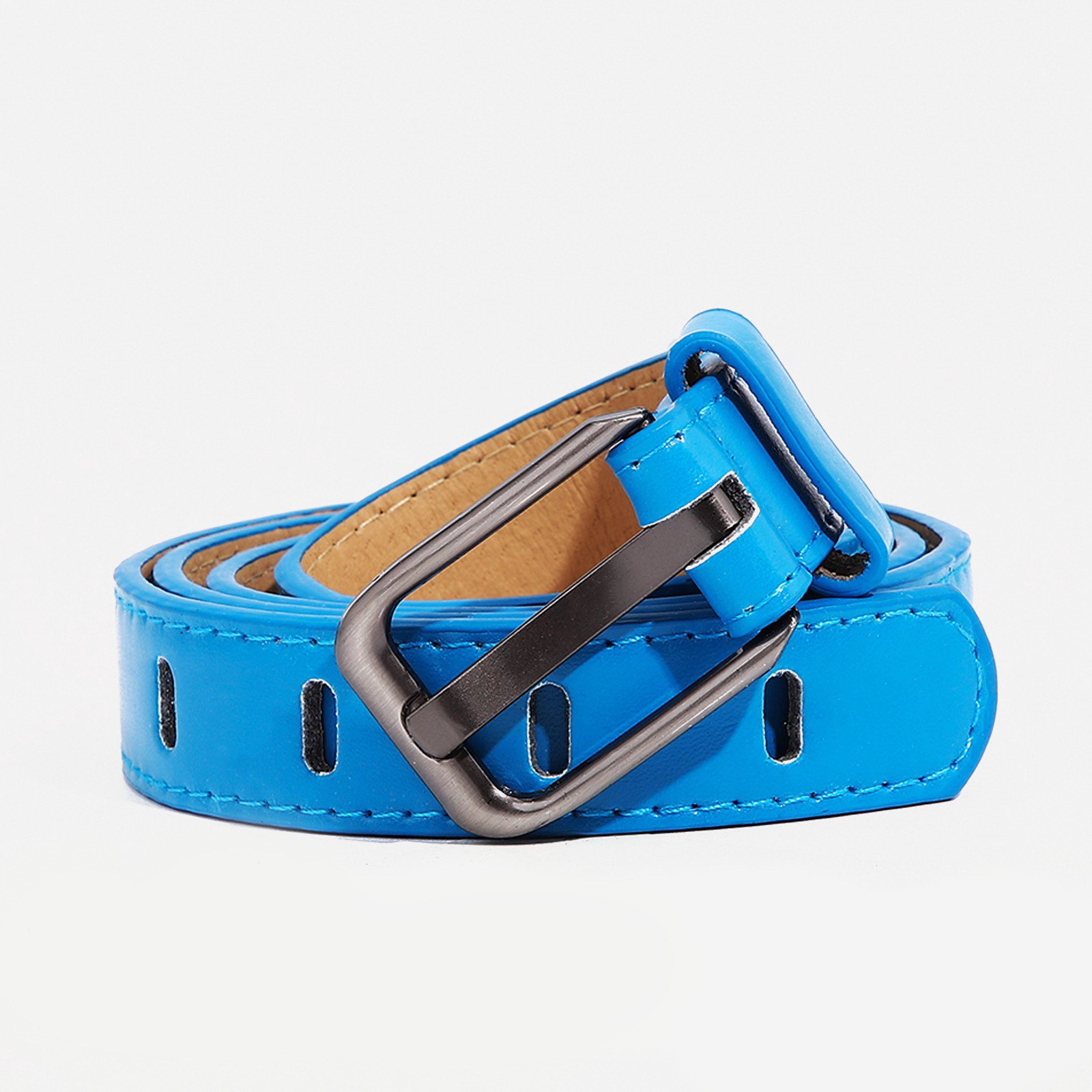 Ремень женский, 100x2.2 см, пряжка тёмный металл, ярко-голубой, 2.2x100x0.2 см., Китай
