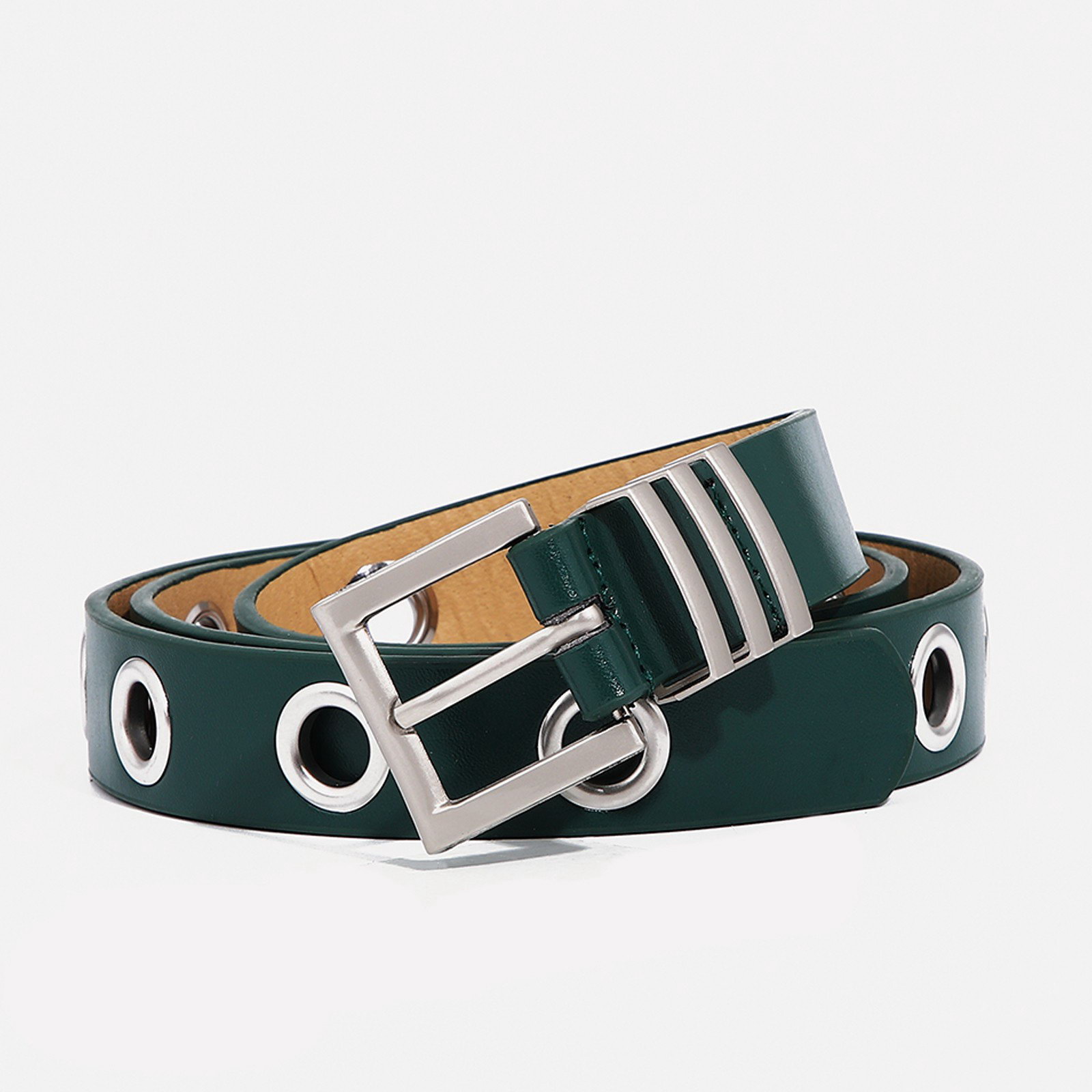 Ремень женский с люверсами, 100x2 см, пряжка металл, серебристая, зелёный, 2x100x0.2 см., Китай