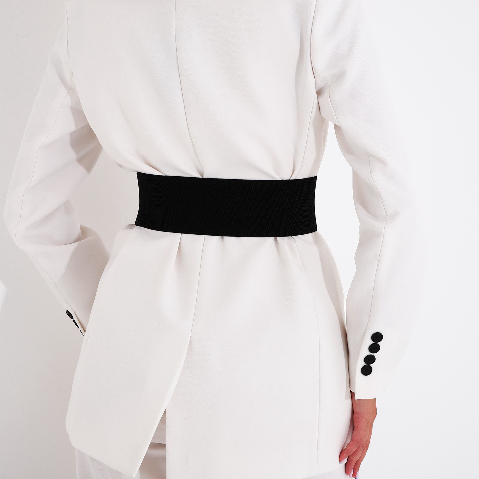 Ремень-резинка женский широкий, 66x8 см, пряжка металл, золотистая, чёрный, 8x66x0.3 см., Китай