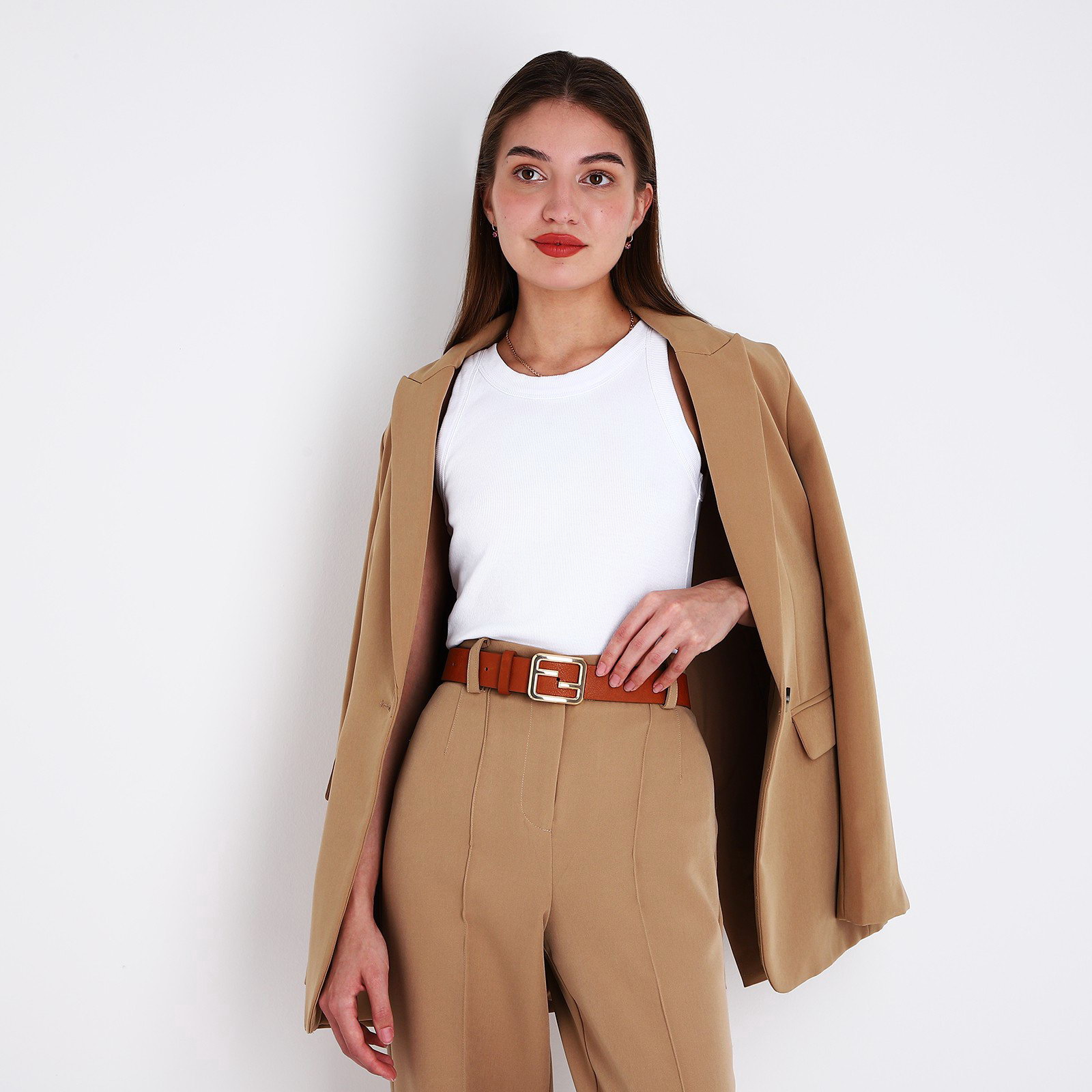 Ремень женский 110x3.5 см, пряжка-гвоздик металл, золотистая, рыжий, 3.5x110x0.3 см., Китай
