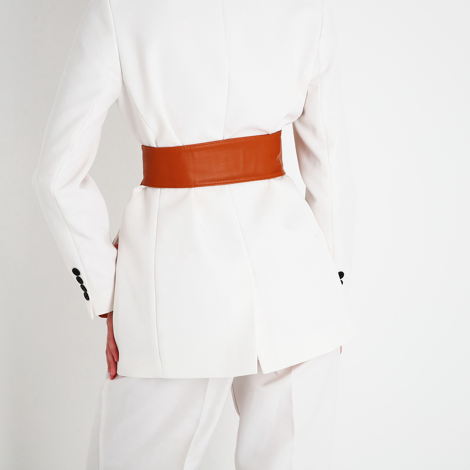 Ремень женский широкий, 100x8 см, пряжка-затяжка в ремня, рыжий, 8x100x0.3 см., Китай
