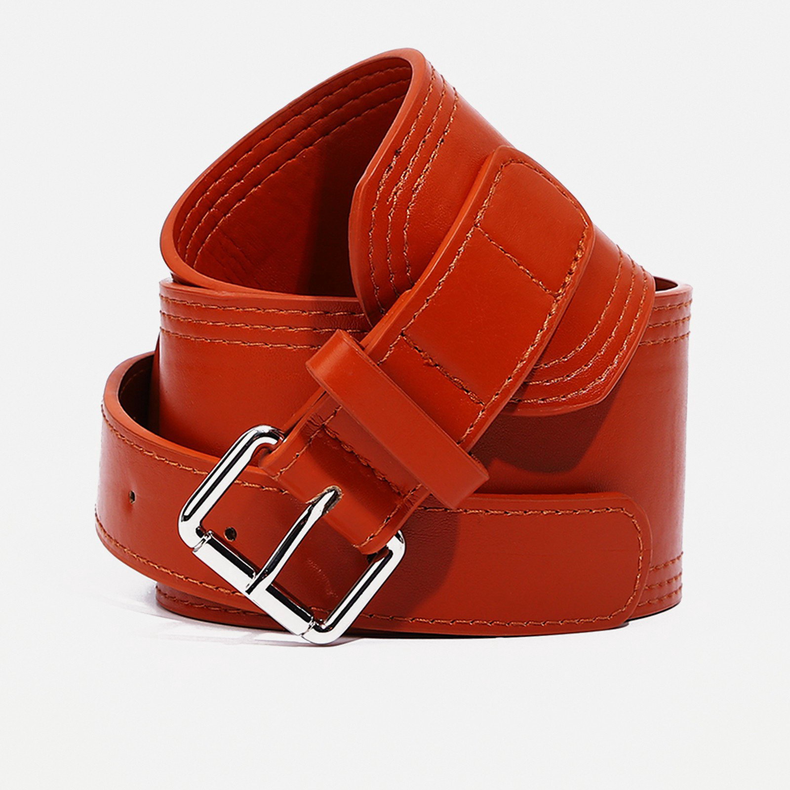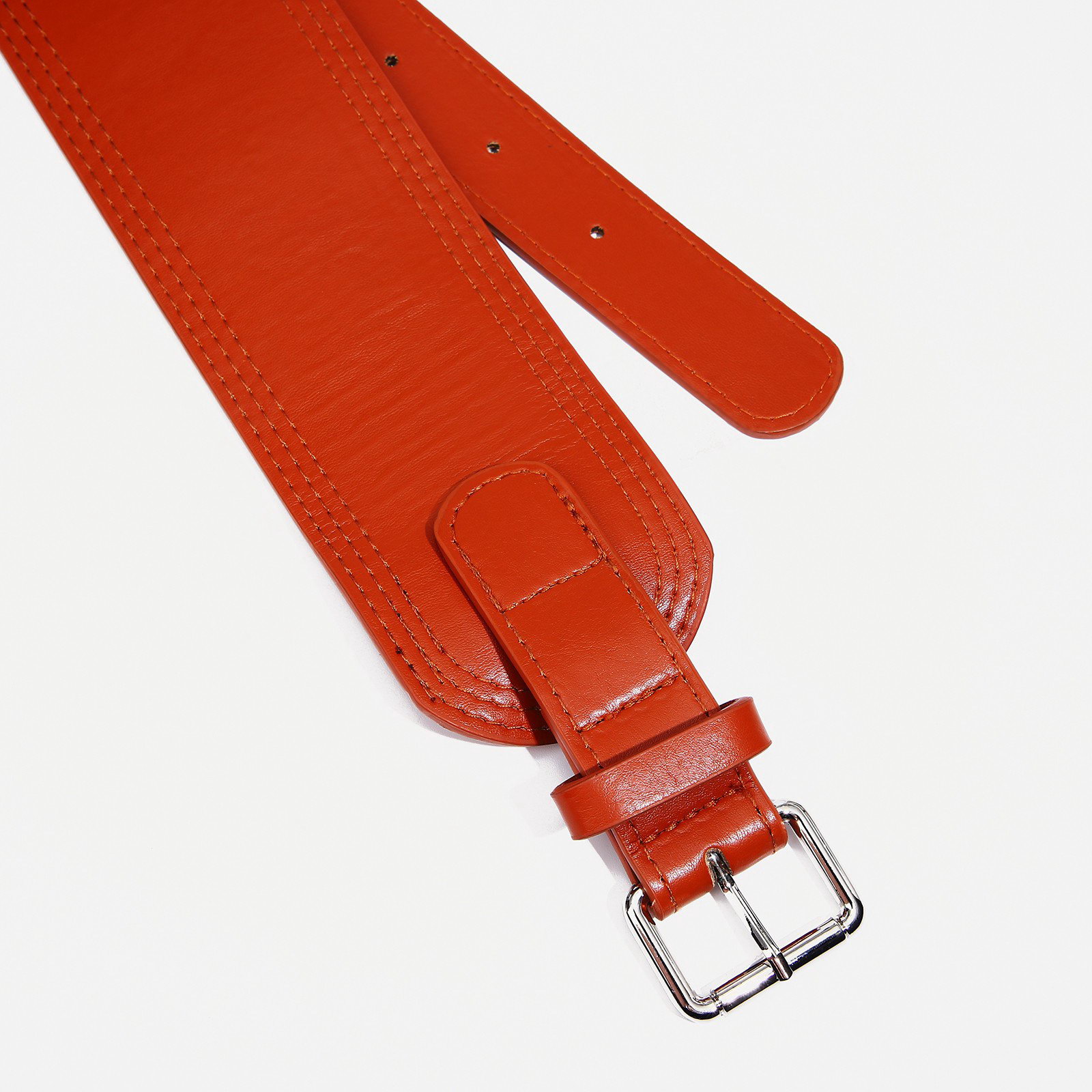 Ремень женский широкий, 100x6.7 см, пряжка металл, серебристая, рыжий, 6.7x100x0.3 см., Китай