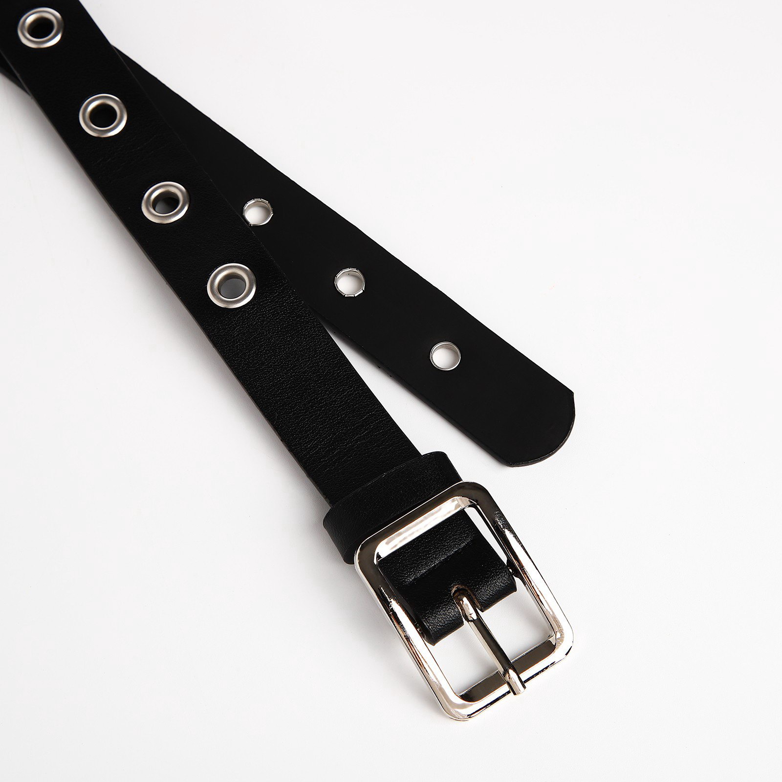 Ремень женский с люверсами, 105x2.5 см, пряжка металл, серебристая, чёрный, 2.5x105x0.2 см., Китай