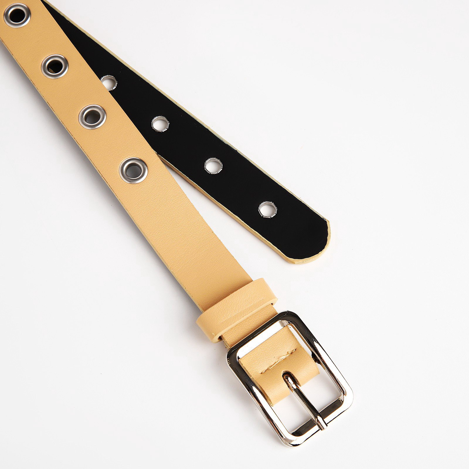 Ремень женский с люверсами, 105x2.5 см, пряжка металл, серебристая, бежевый, 2.5x105x0.2 см., Китай