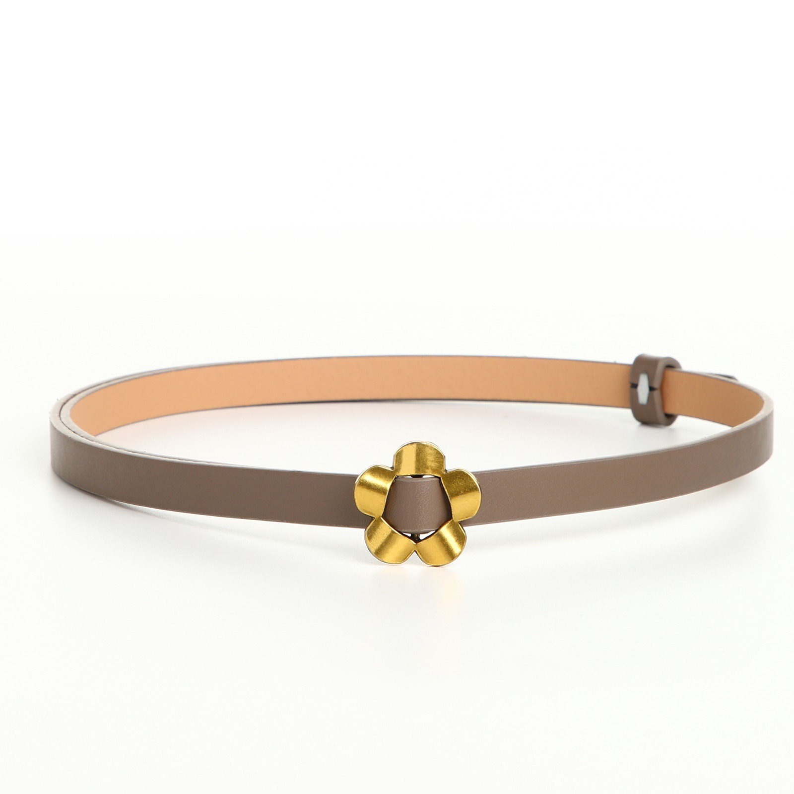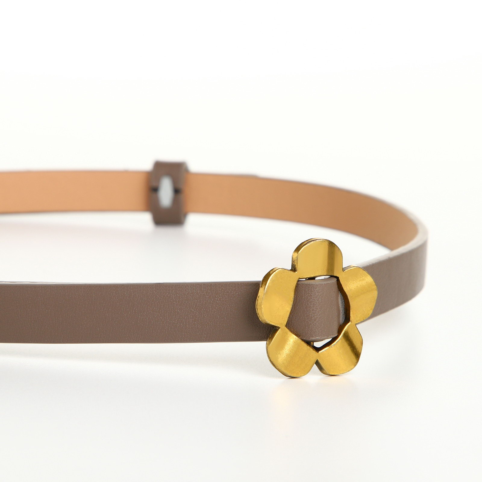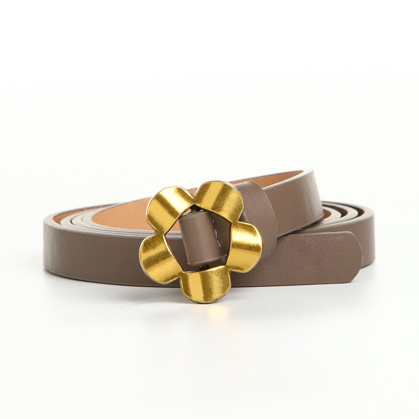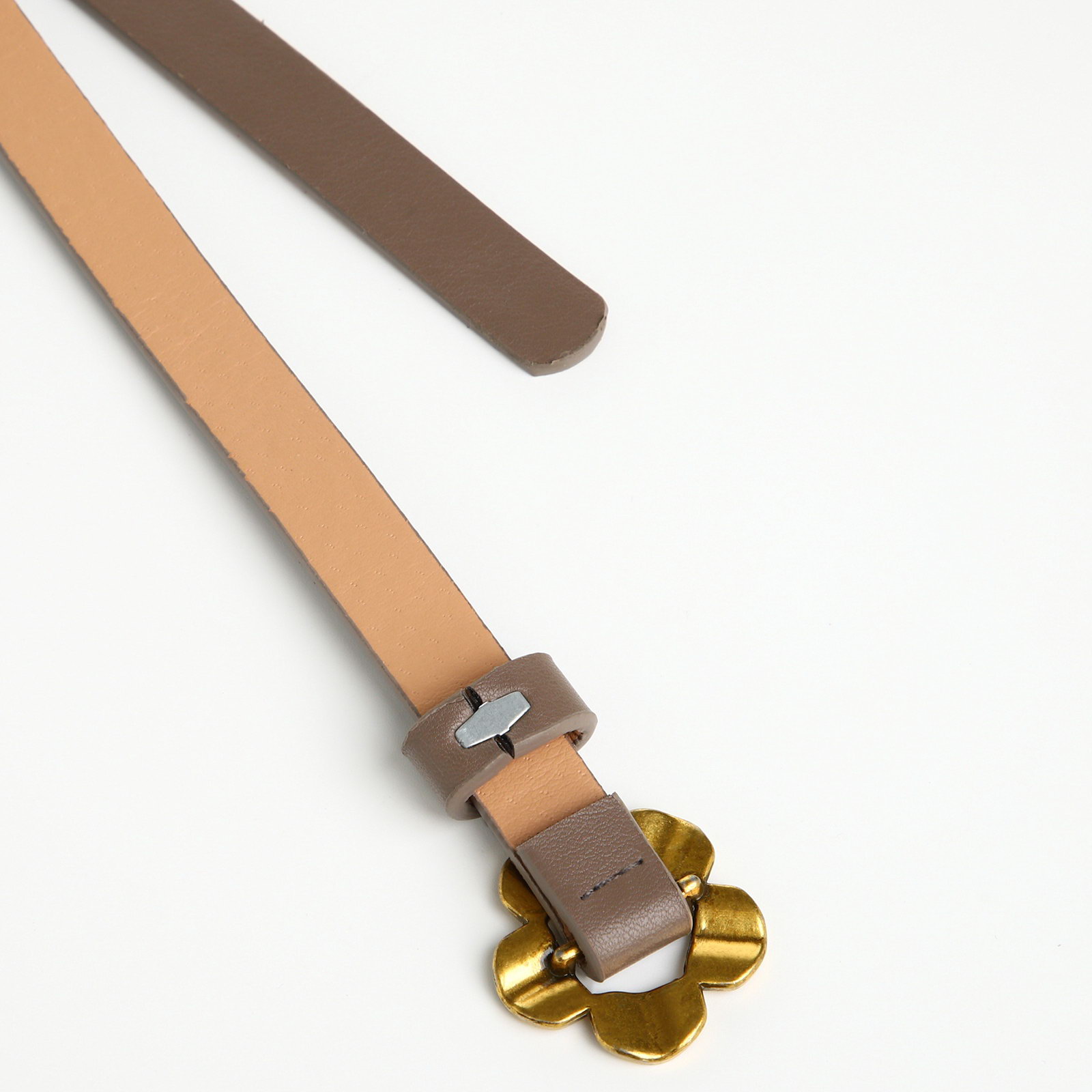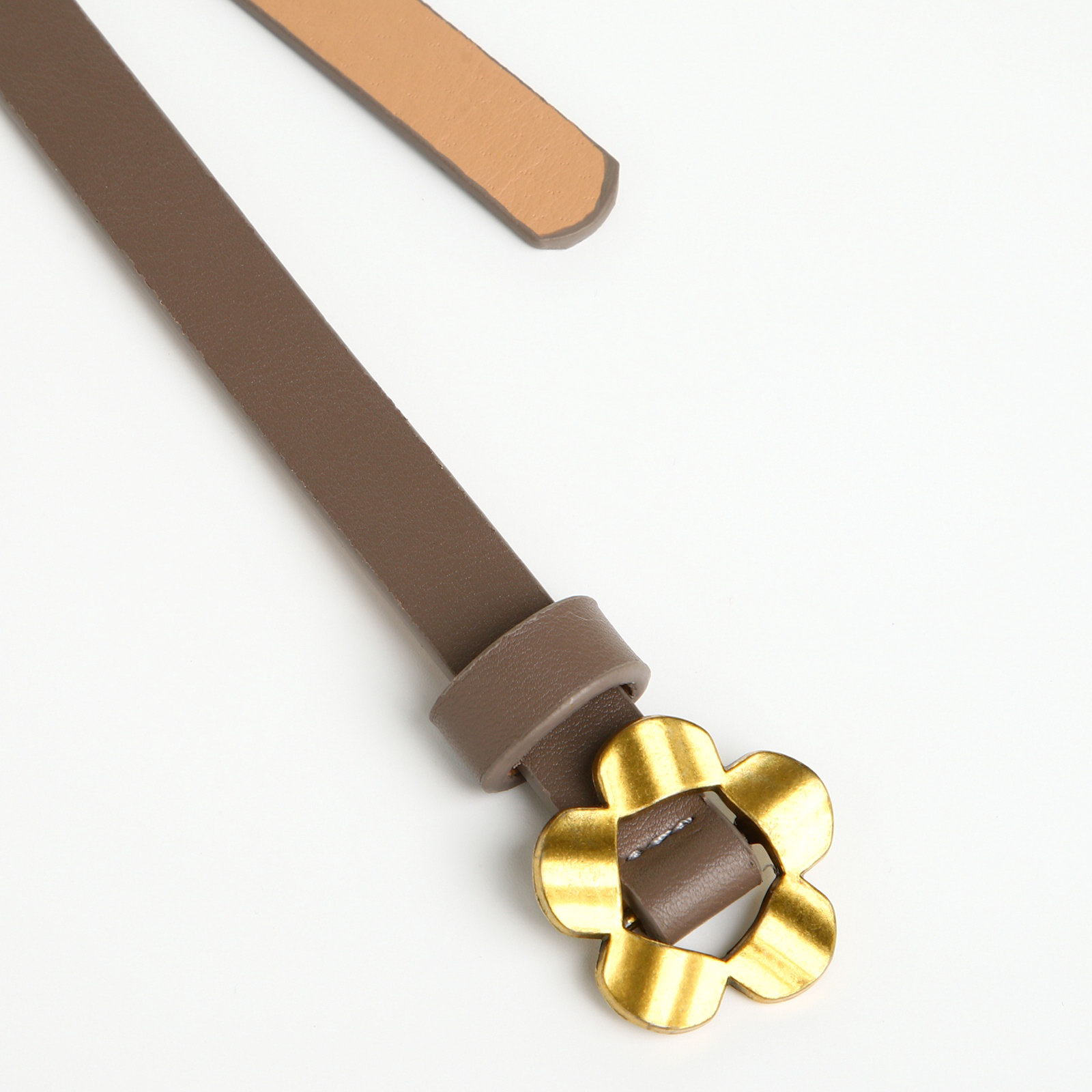 Ремень женский тонкий, 105x1 см, пряжка-затяжка металл, золотистая, коричневый, 1x105x0.2 см., Китай