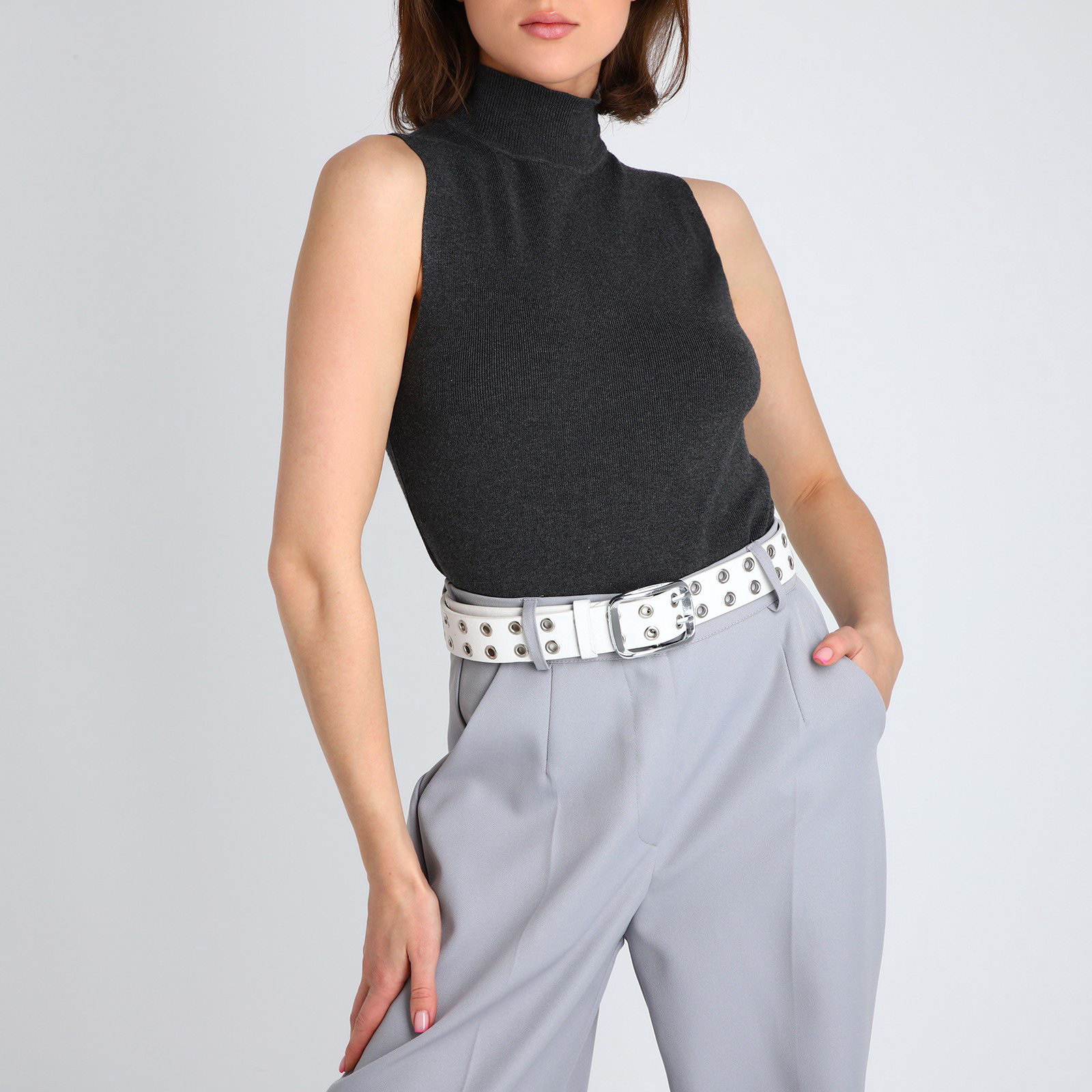 Ремень женский с винтом, люверсами, 105x4 см, пряжка металл, серебристая, белый, 4x105x0.2 см., Китай