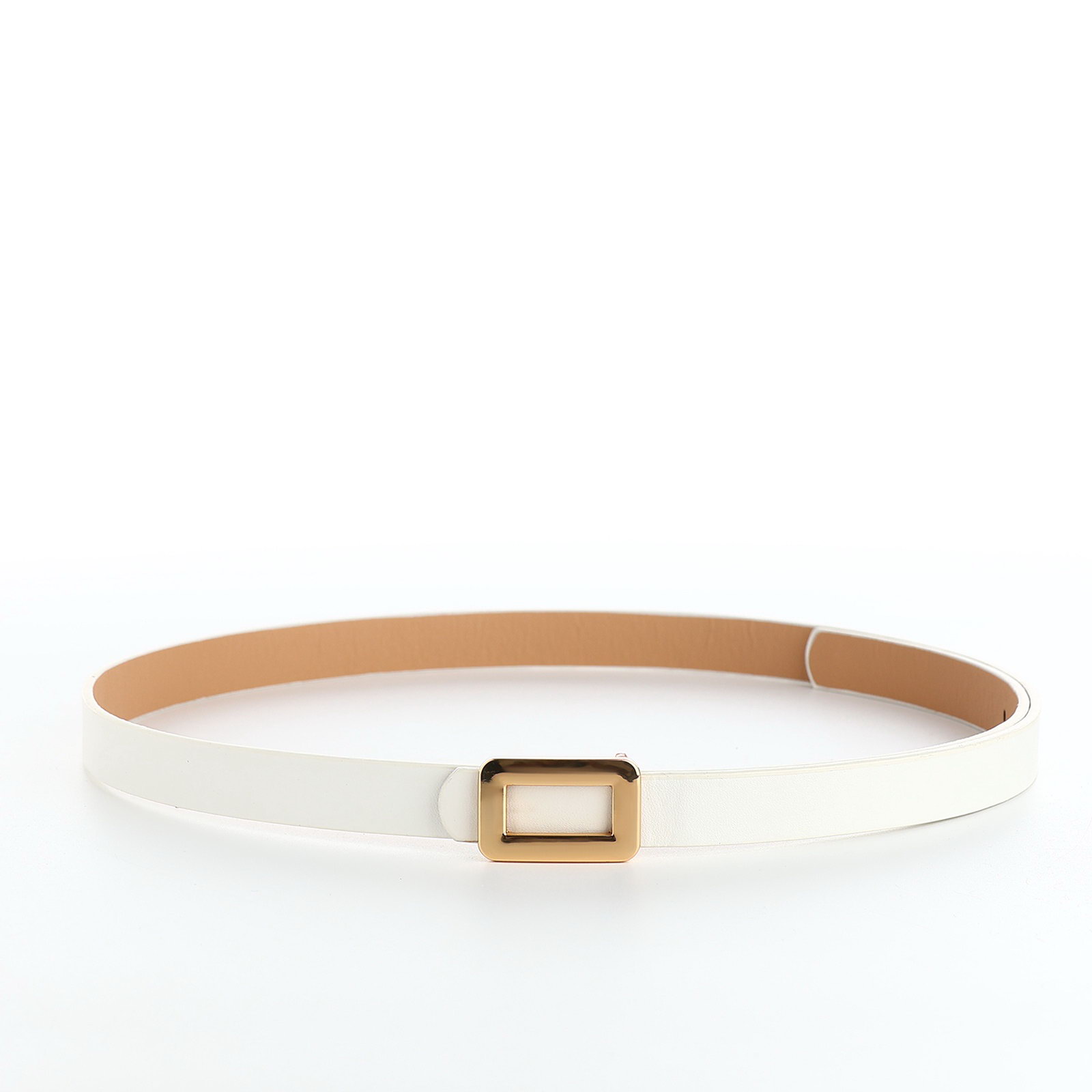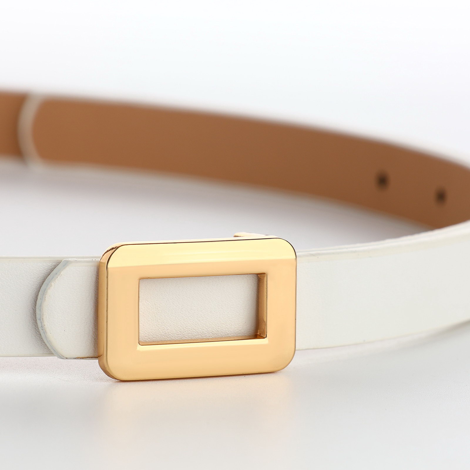 Ремень женский тонкий, 110x1.6 см, прямоугольная пряжка металл, золотистая, белый, 1.6x110x0.3 см., Китай