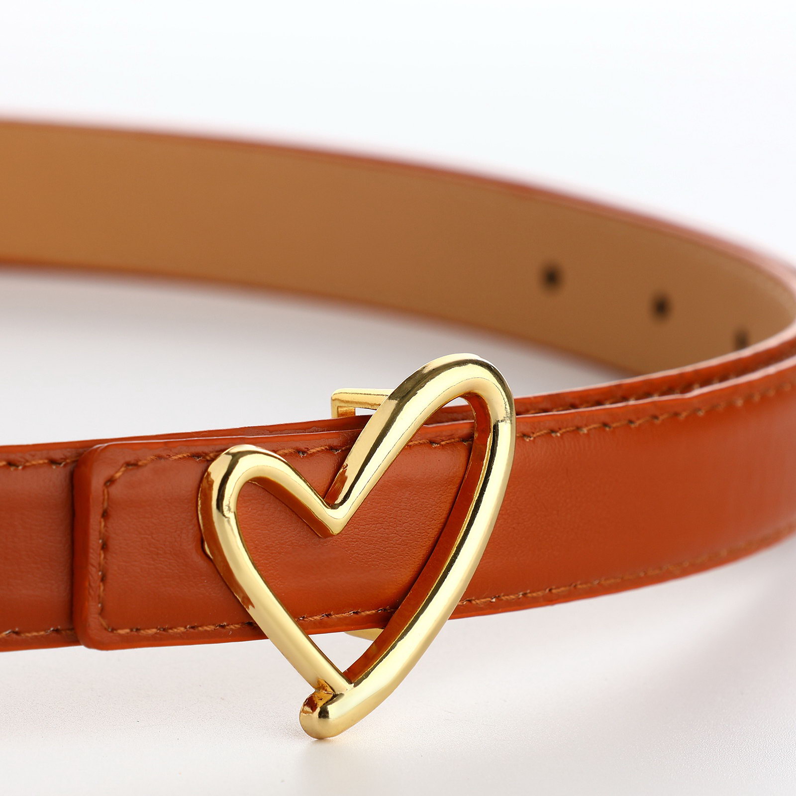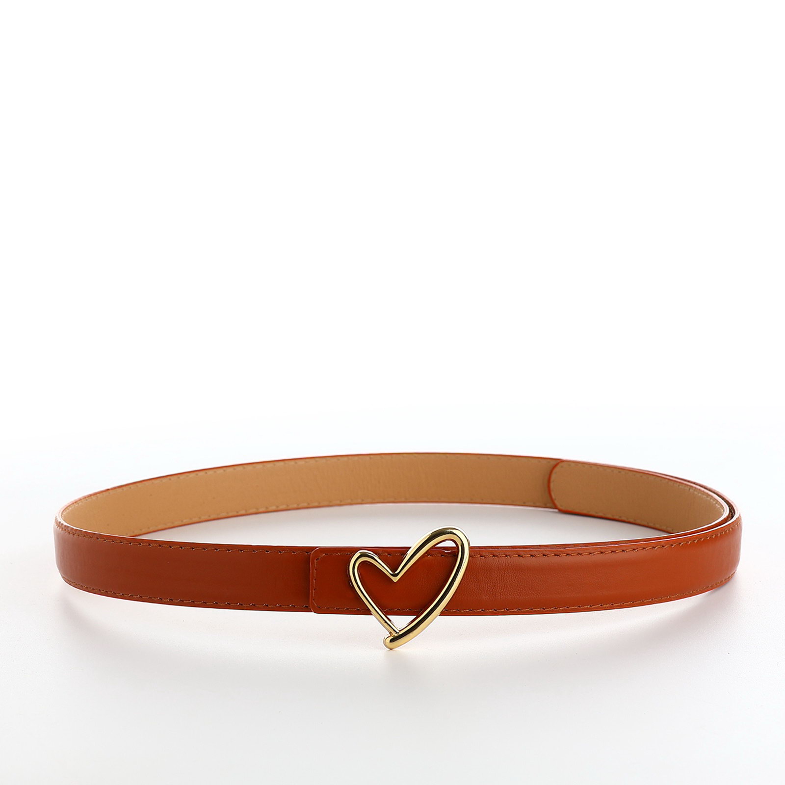 Ремень женский, 110x2.2 см, пряжка-гвоздик металл, золотистая, рыжий, 2.2x110x0.3 см., Китай